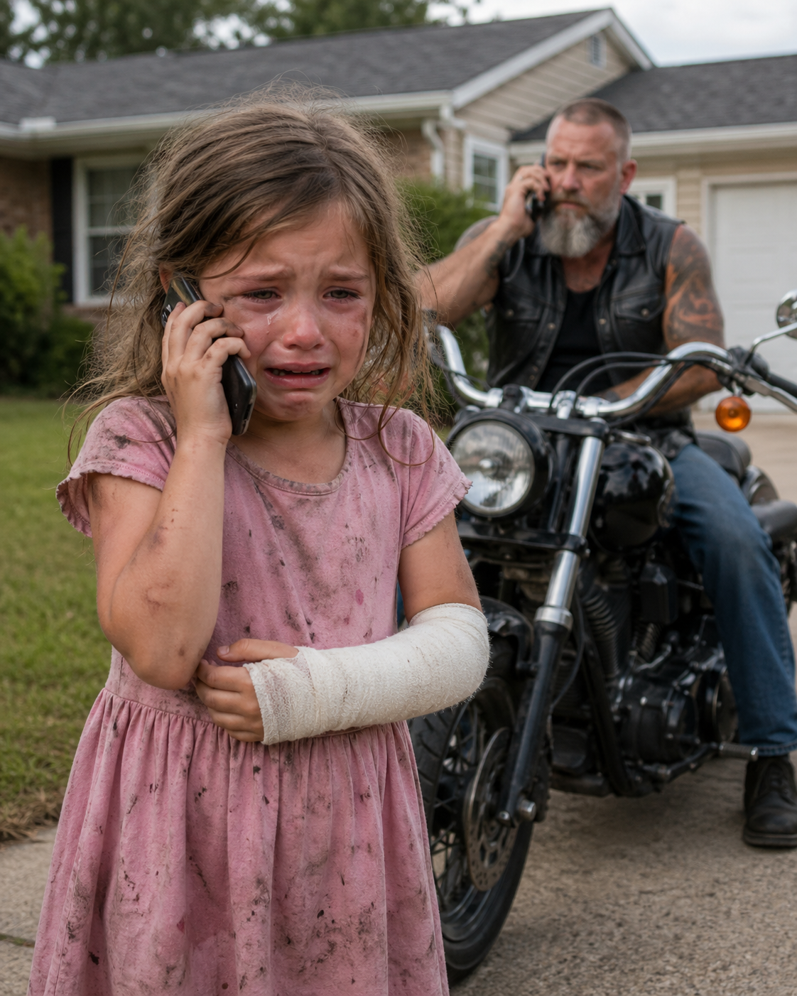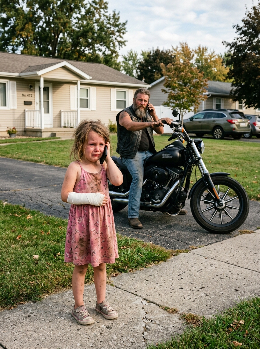 It was swollen, held tightly against her chest, her small fingers gripping her shirt as if trying to hold back the pain. A faint mark showed on her cheek—not loud or dramatic, but enough to tell the story.