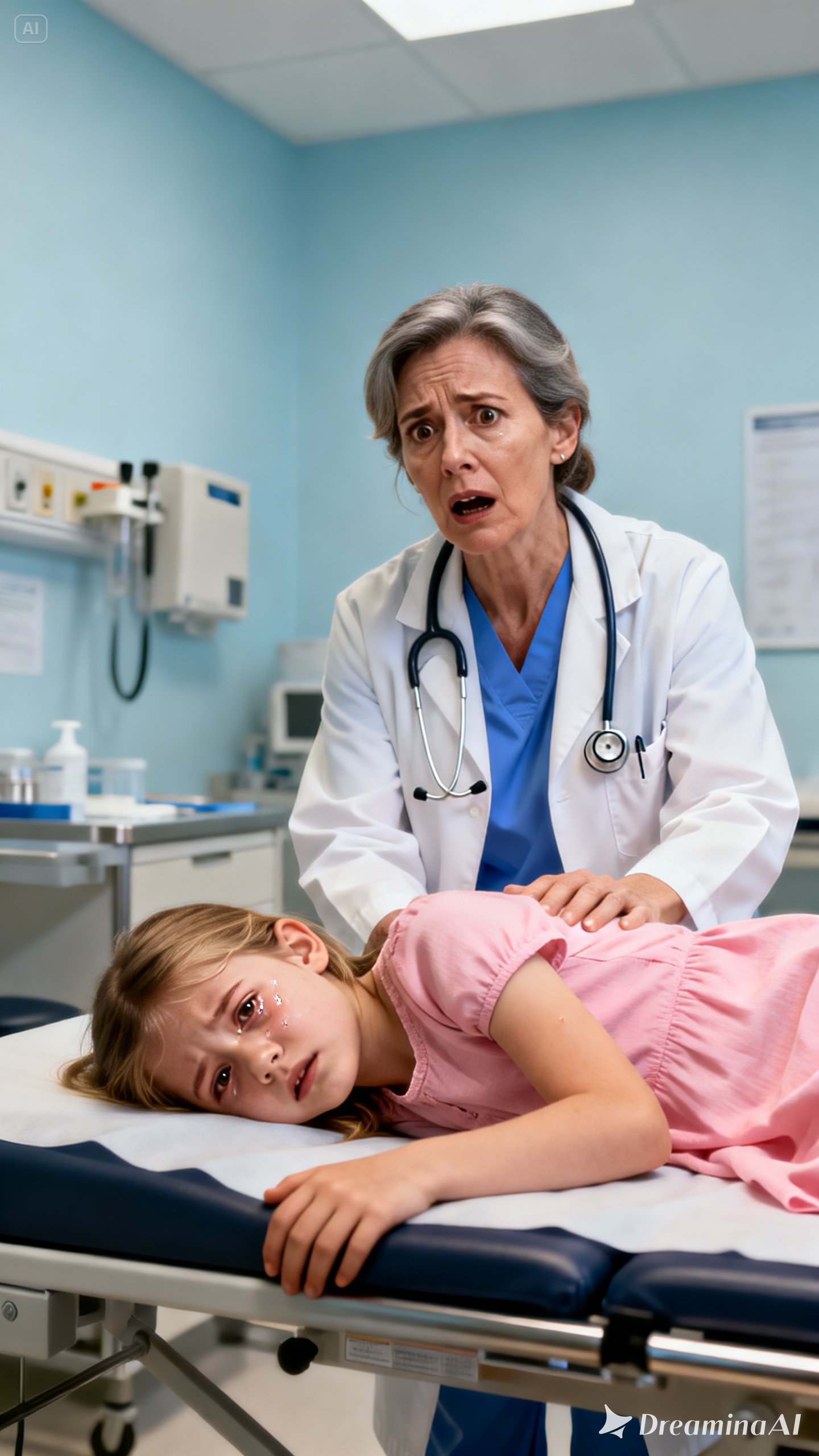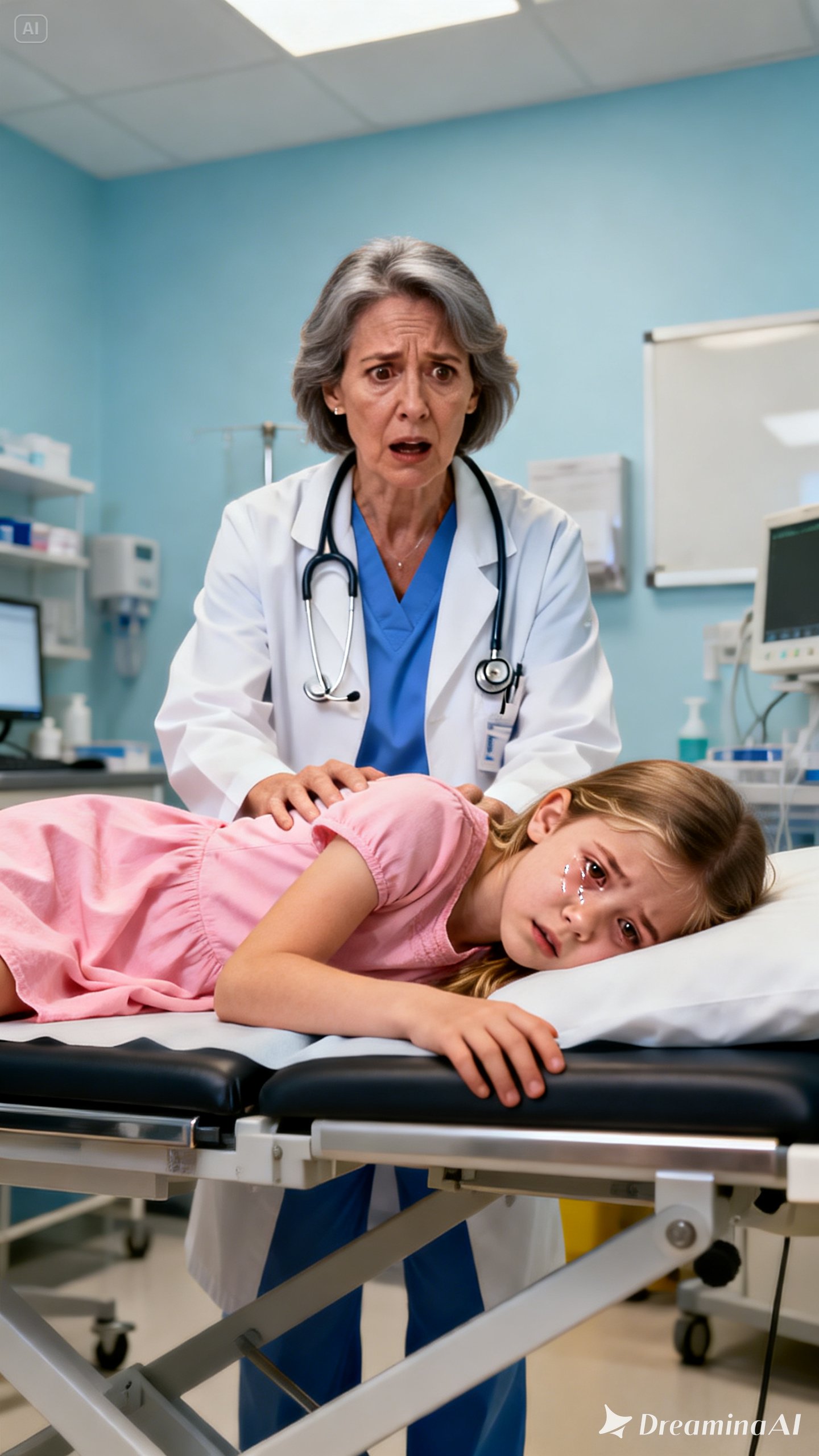 “Lily, I’m going to take you somewhere safe so doctors can help your tummy, okay?”
