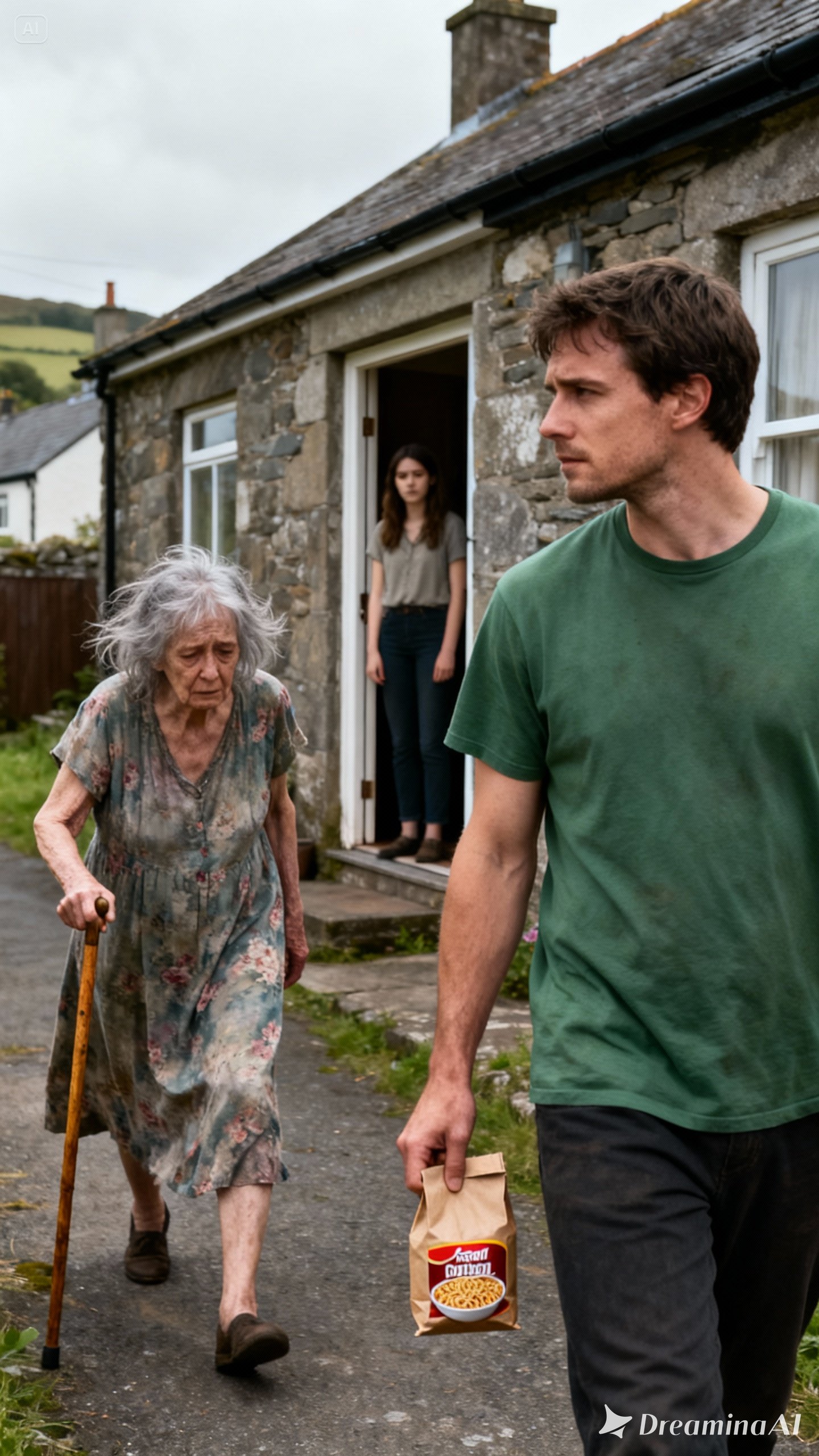 Helen stood there for a moment, clutching the pack of noodles to her chest as the drizzle turned into steady rain. Her old coat began to soak through, but she said nothing.