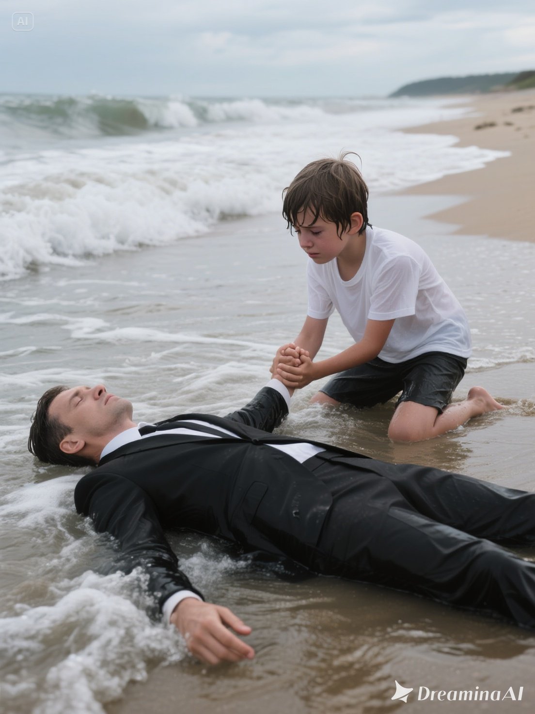 The cold water burned his skin. He swam hard, caught the man’s arm, and pulled with all his strength. The heavy suit dragged them both down, but Leo kicked furiously until, inch by inch, they reached the shore.