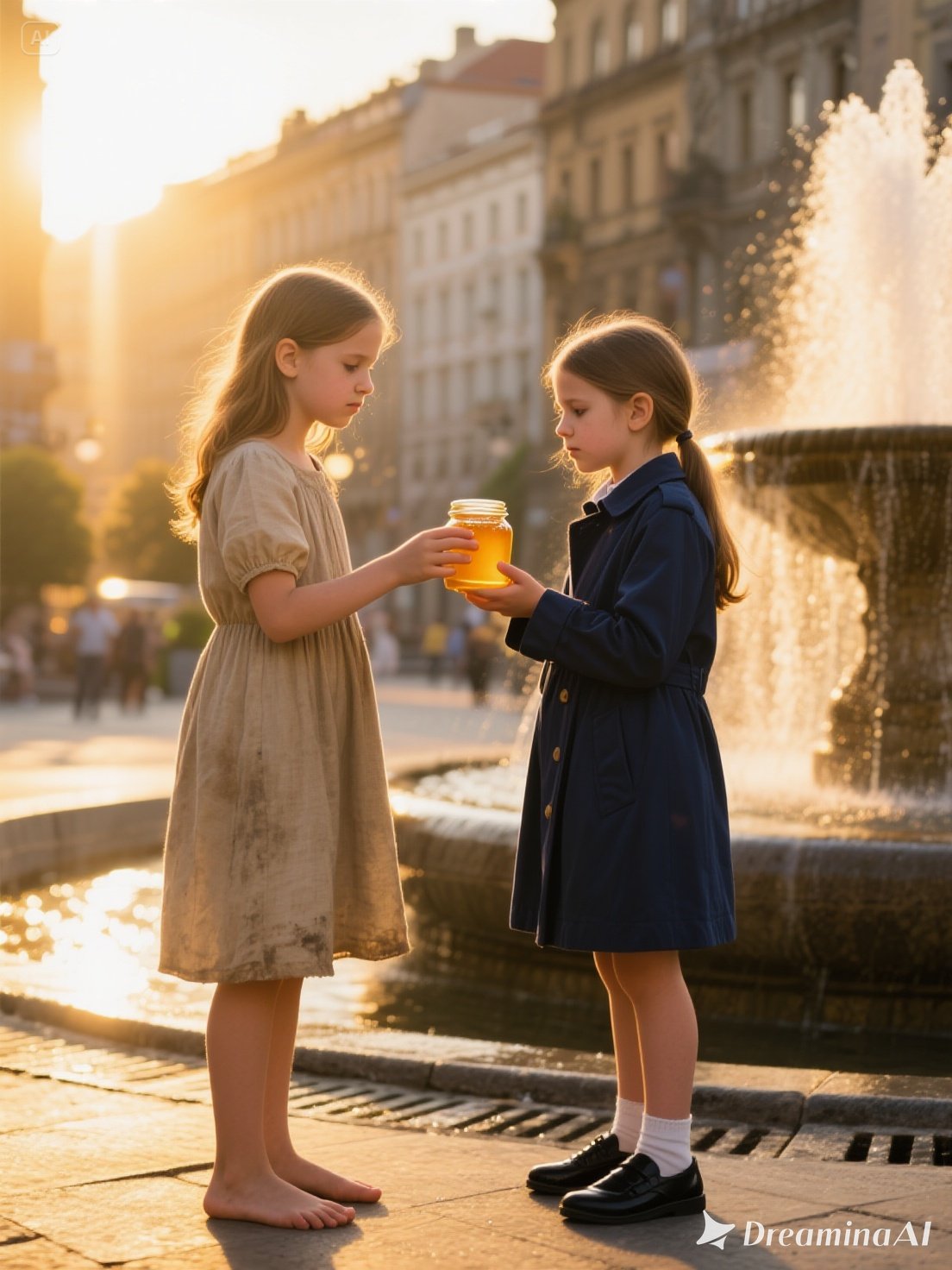Then she noticed a girl about her age standing barefoot by the fountain.