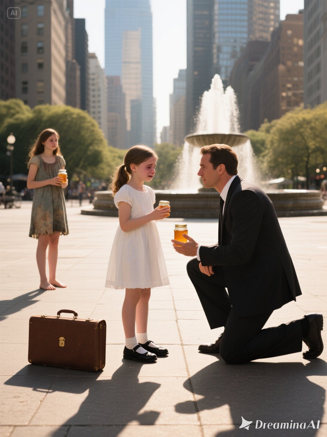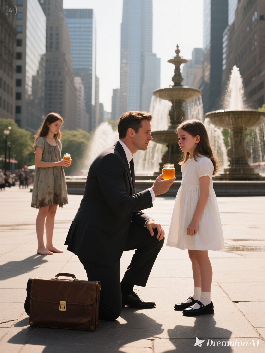 Panic gripped him. He sent his team across Manhattan—shelters, alleys, underpasses. Finally, under a stone arch in Central Park, they found her curled on a piece of cardboard, clutching her honey jar like treasure.