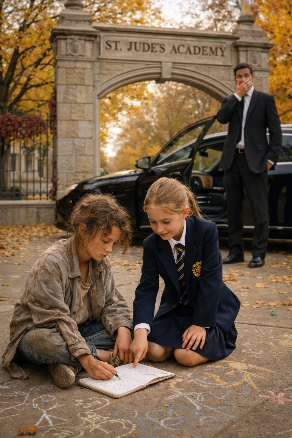 Through the tinted window, he looked toward the sidewalk where most parents waited—some chatting with one another, others scrolling through their phones while chauffeurs waited in running cars.