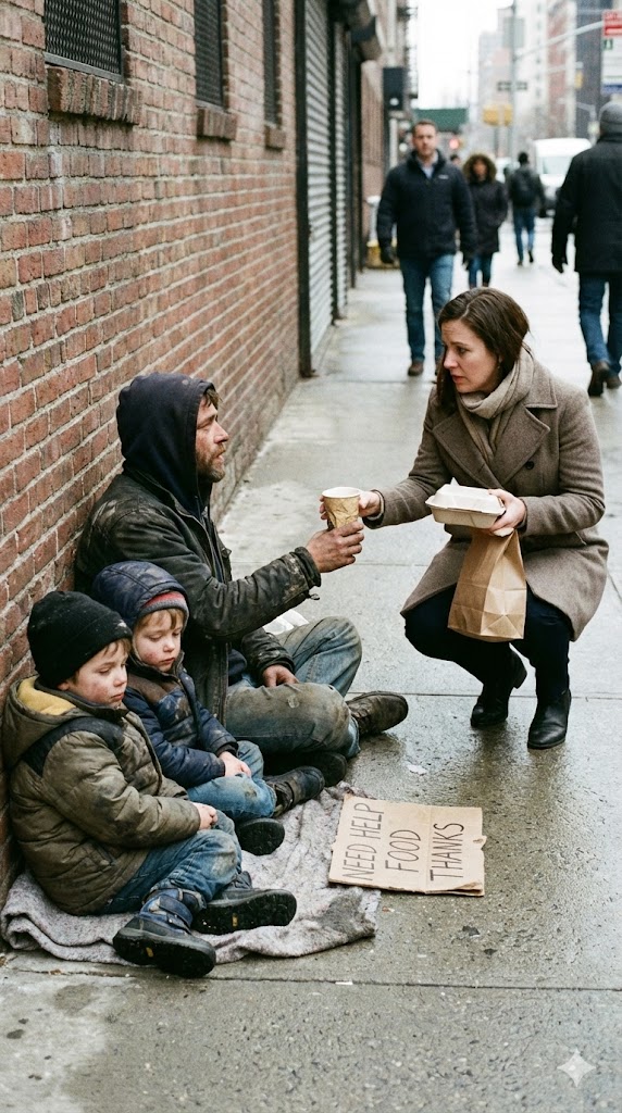 She placed the sandwich into his palm as if it meant nothing special. No judgment. No disgust. No sermon. Just… compassion.