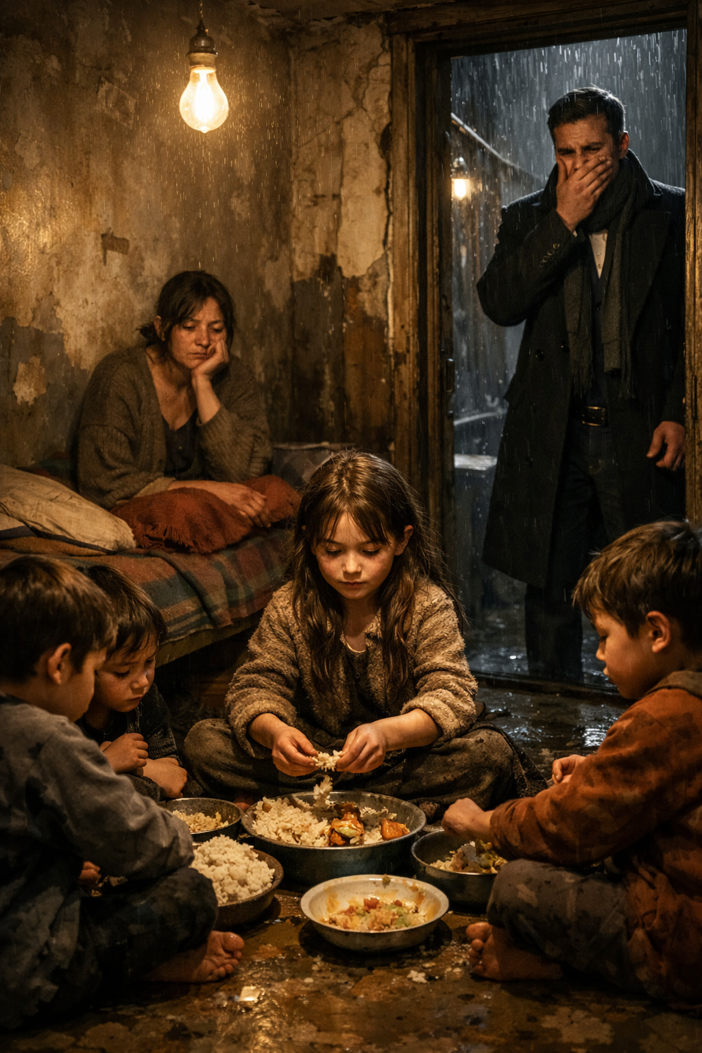 “Who is it for?” She kept her eyes fixed on the floor. “My mama is sick. I have five brothers and sisters. If I don’t bring food home… they go to sleep hungry.”