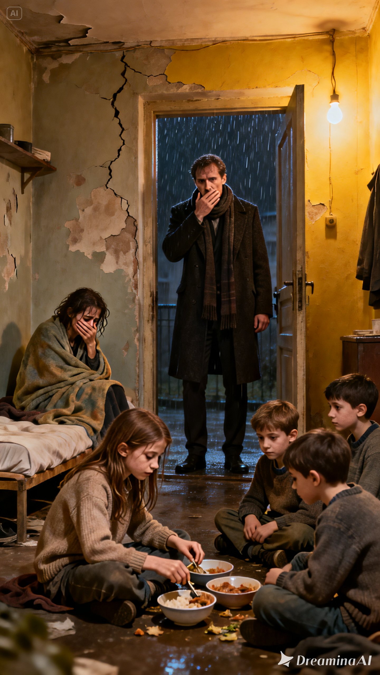 She coughed into a cloth while the children moved around her carefully, as if love itself might shatter her if they weren’t gentle.