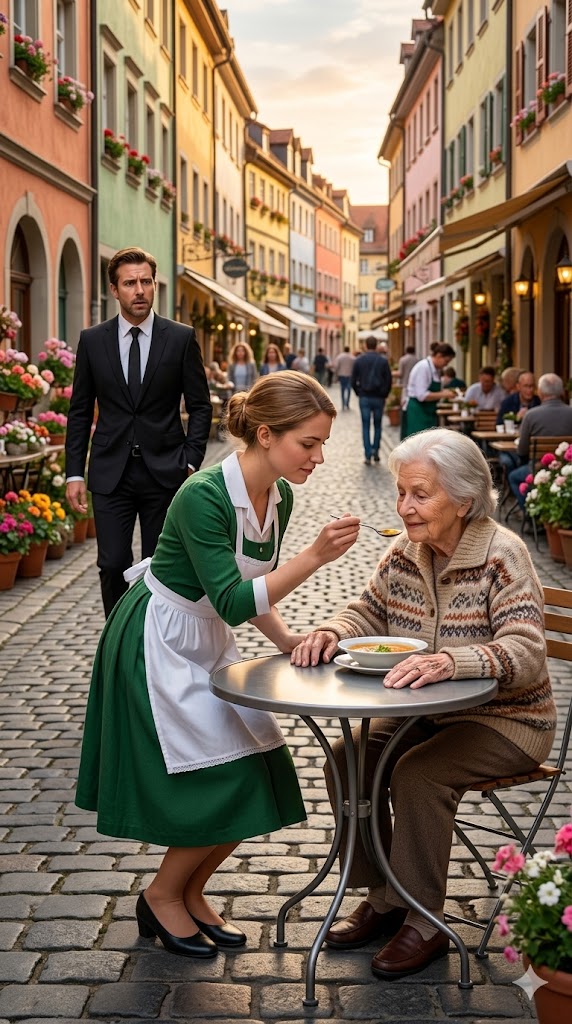 She hurried to the kitchen, requested a bowl of hot soup, and returned in less than four minutes. While other diners glanced at their watches or murmured about the delay, Valeria pulled up a chair and sat beside the woman as if time itself could pause — even though it couldn’t.