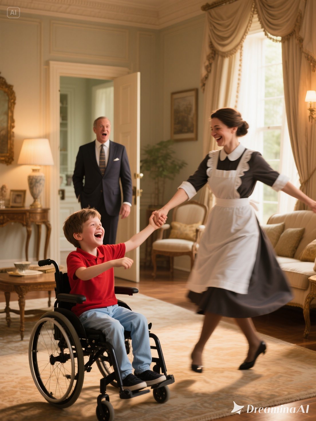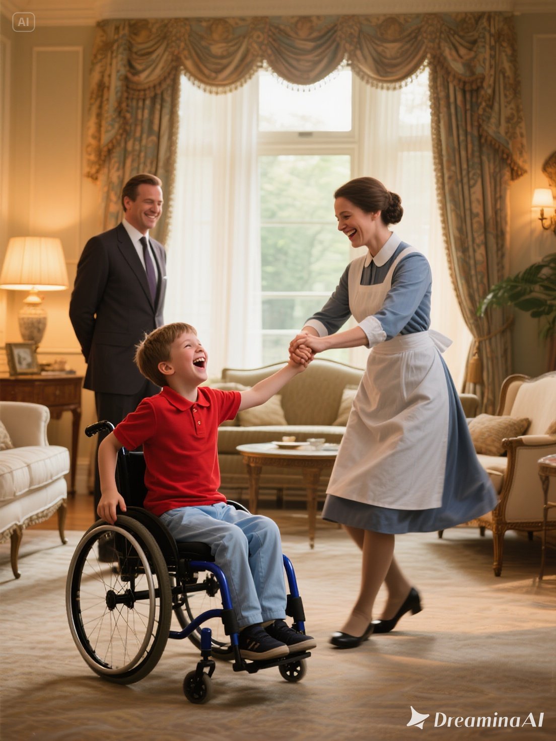 One afternoon, golden light streamed through the tall windows. Watching his son smile faintly as Rosa spun him in gentle circles, Edward felt tears slide down his face—not from grief, but from gratitude.