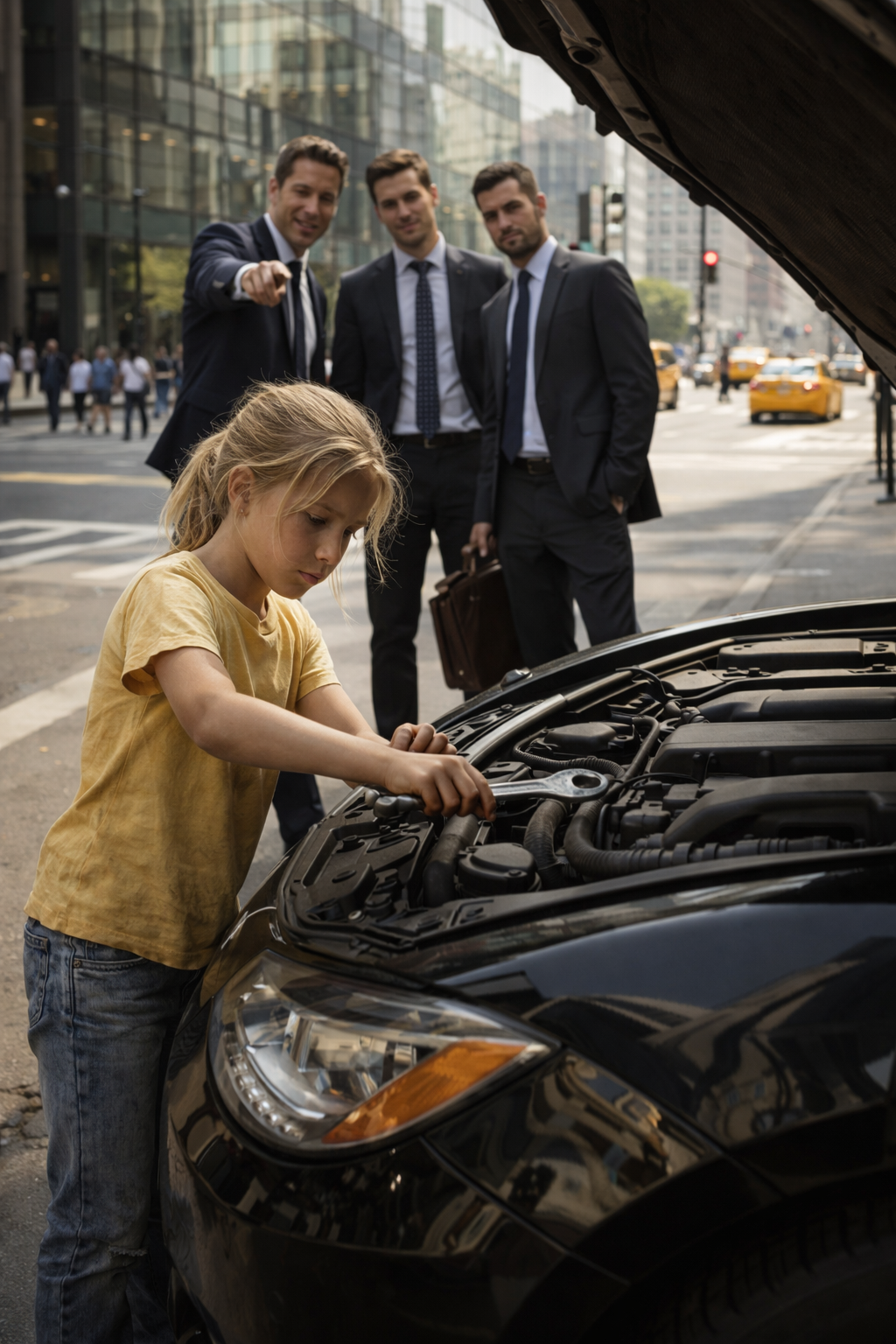 He saw the fear flicker across her face, then vanish just as quickly beneath a control no child should ever have to learn. She glanced at the phones, then at the open hood, then back at him.