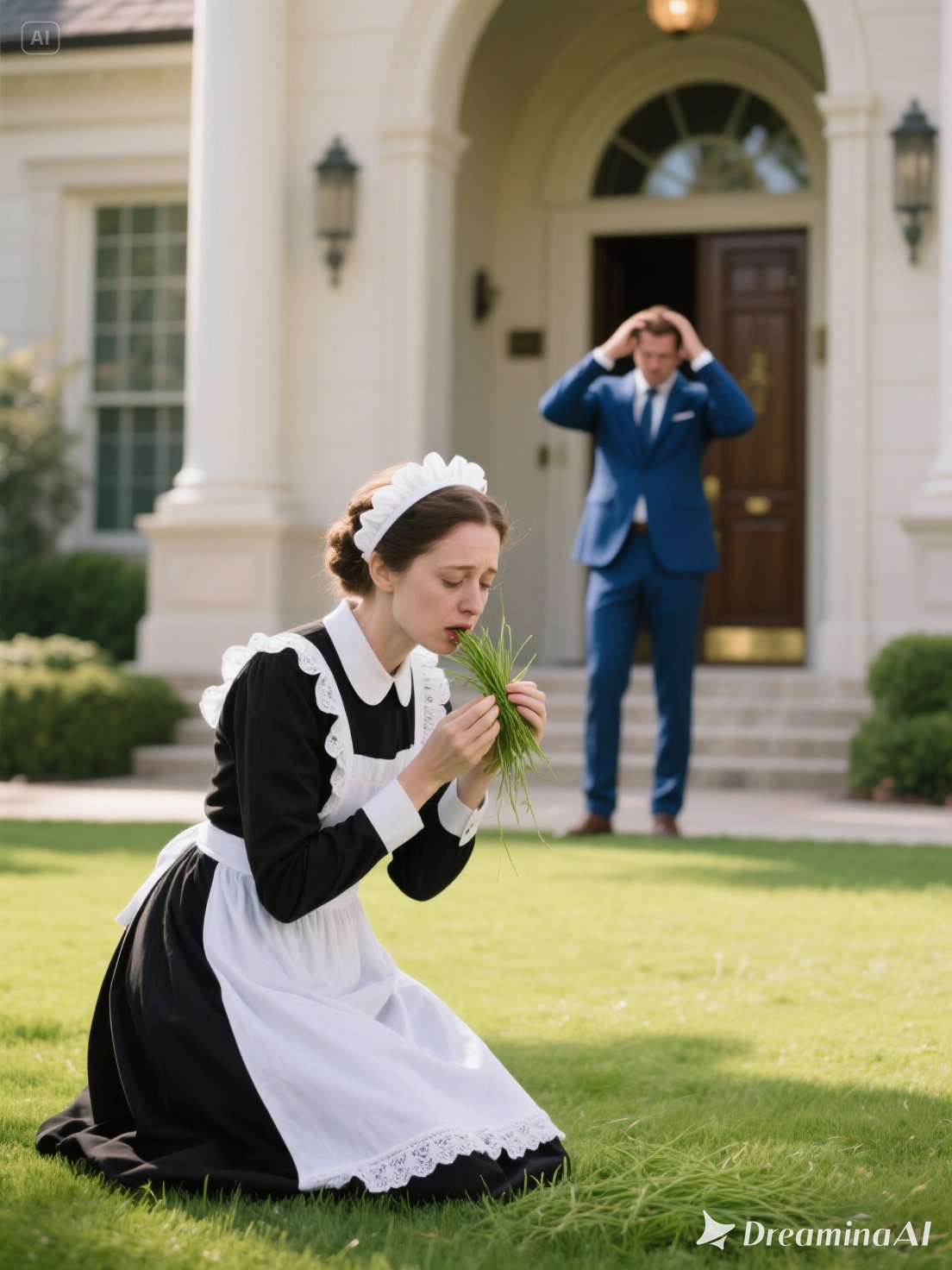 There, crouched on the edge of the grass, was his maid. She wasn’t pulling weeds or arranging flowers. She was chewing.