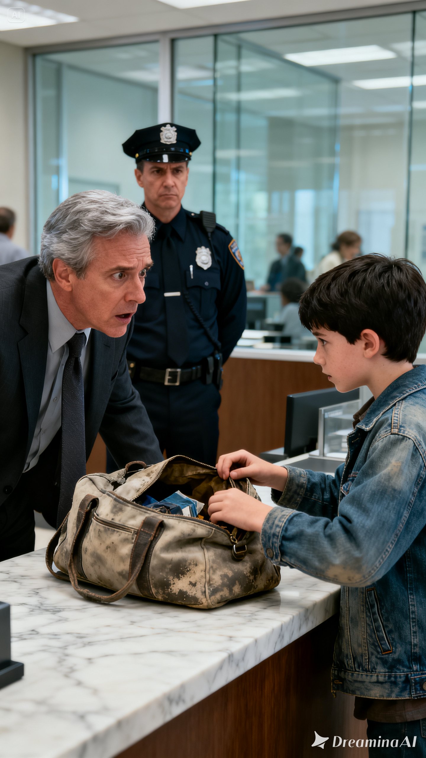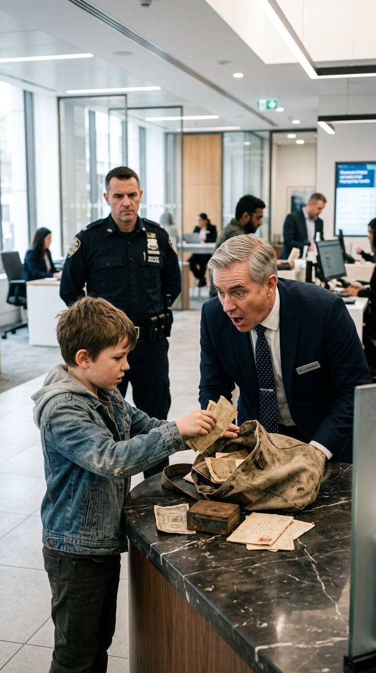 The boy saw the shift in the teller’s face and whispered: