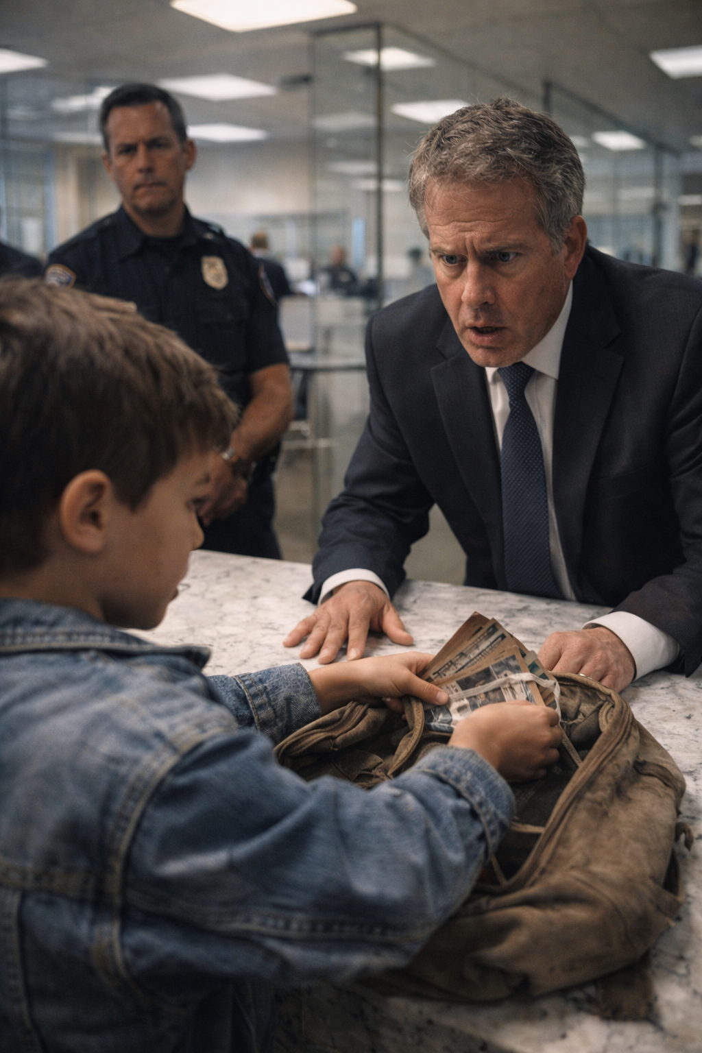 Across the counter, the boy stood completely still, watching him with that quiet, frightened patience children learn when adults refuse to tell them the truth.