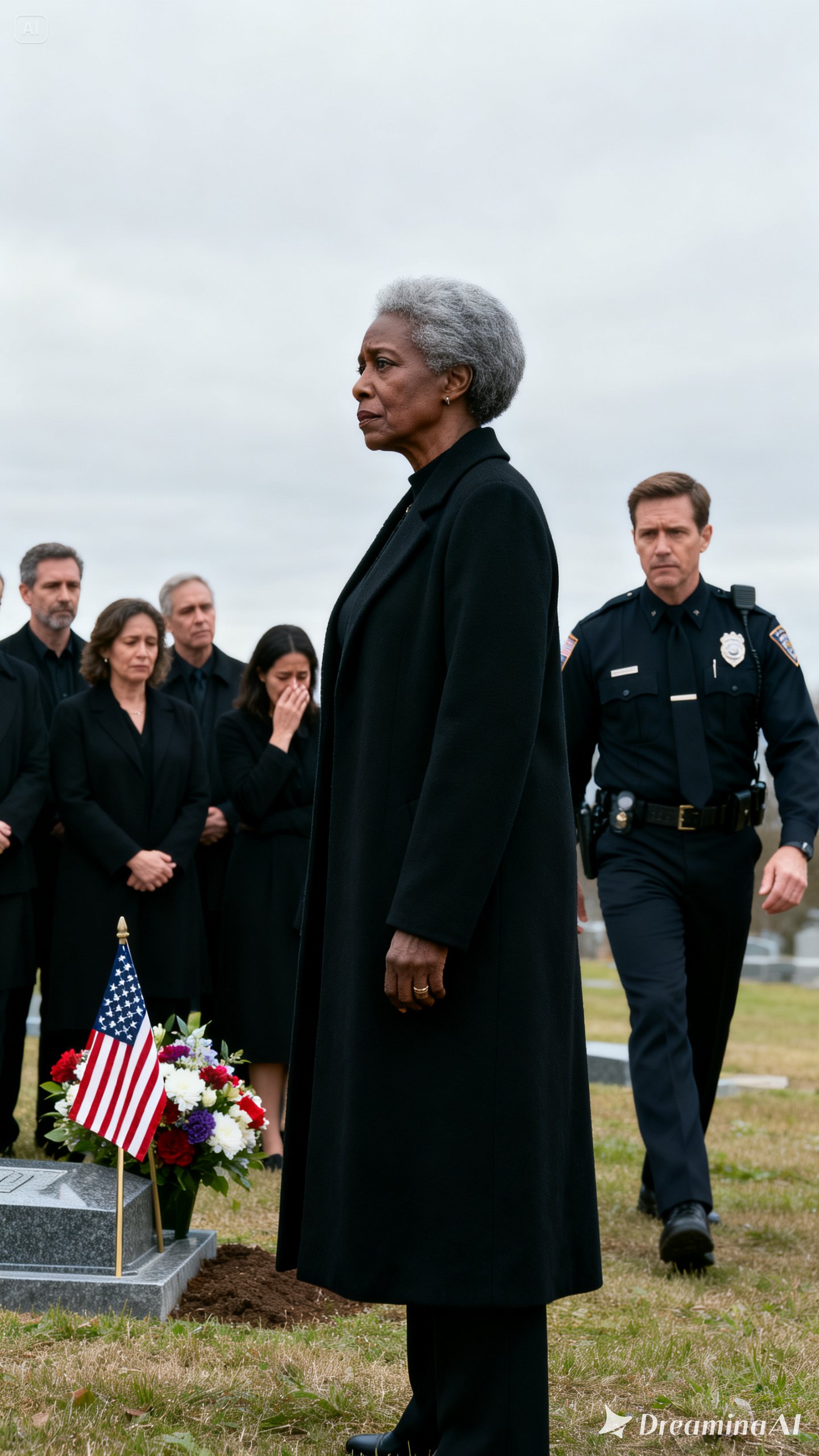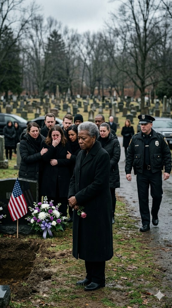 His gaze landed on me—an older Black woman in a simple coat, standing closest to the grave. Something in his expression sharpened. He ordered me to step away from the site and show my ID. I kept my voice steady, telling him my identification was in the vehicle and reminding him we were in the middle of my son’s funeral. He scoffed, calling it “convenient.” When a friend lifted a phone to record, he bristled and ordered them to put it away.
