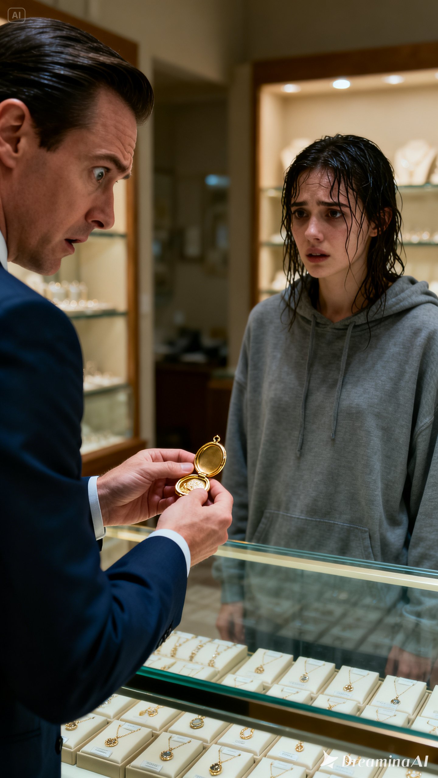 The jeweler stood in the doorway, frozen, the locket still clenched in his hand.