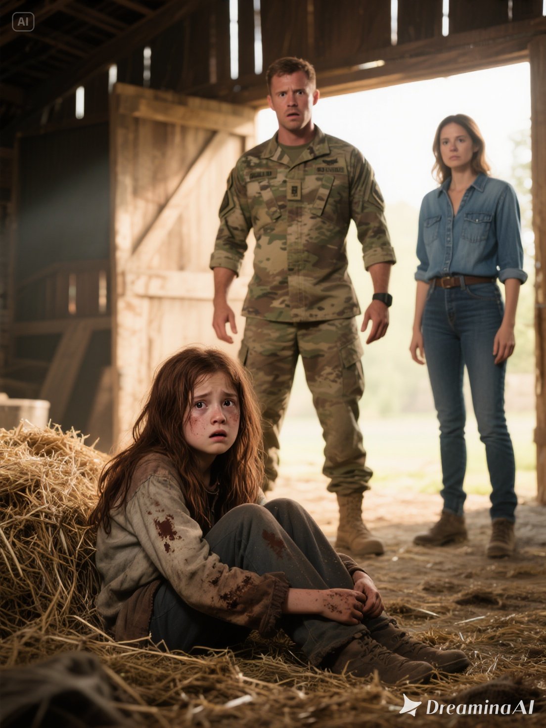 Aaron walked toward the barn, boots crunching on the gravel. The air smelled of hay—and something else, faint and sour. He pushed the door open, and a thin shaft of sunlight fell across the straw. In the light sat a girl with tangled hair and clothes worn from days of use. Her small frame shivered.