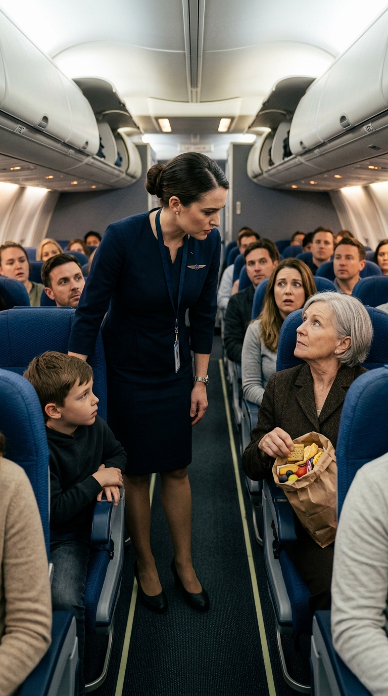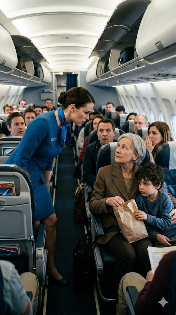 The attendant’s voice snapped through the cabin—cold, sharp, humiliating.