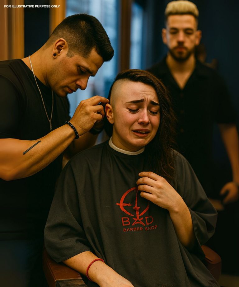 The barber lifted the clippers again—not toward her, but toward himself. With one bold stroke, he carved a line straight through his thick dark hair. Strands tumbled to the floor beside hers.