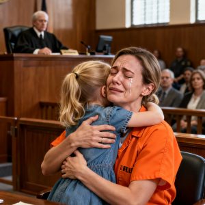 Tear-streaked and trembling, she lifted her face with a mix of fear and fragile hope.