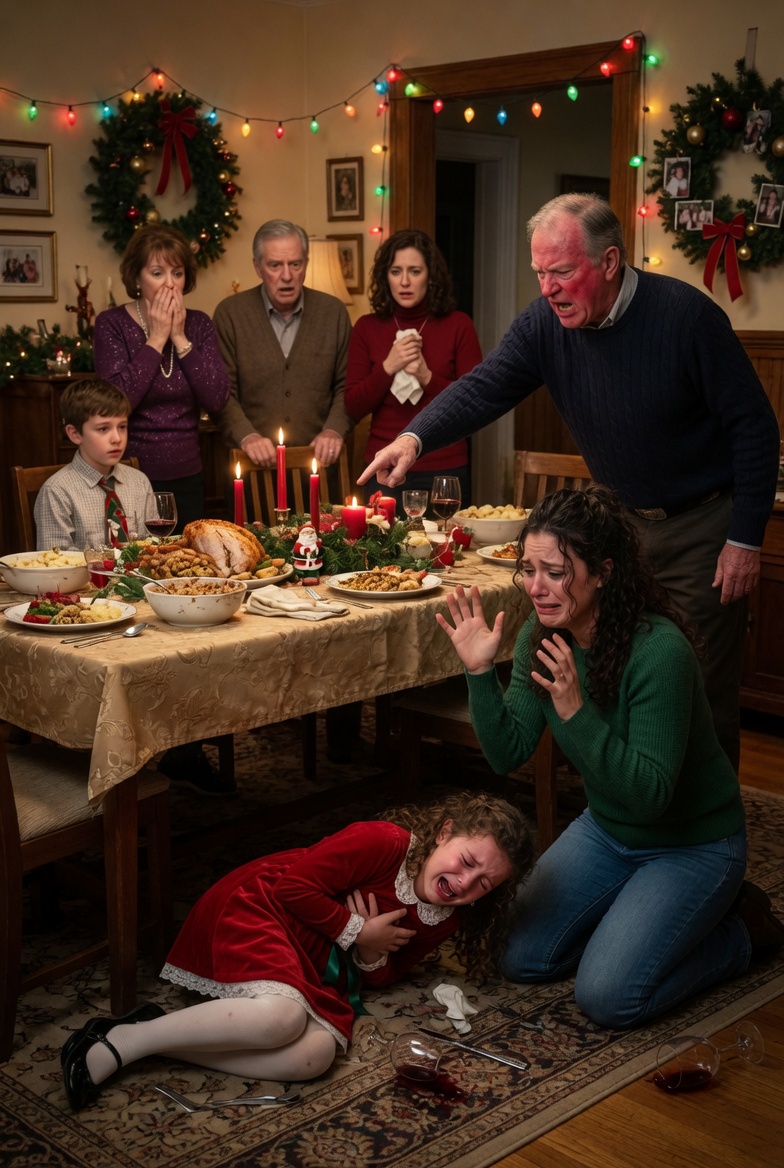 A grandfather pushed his 9-year-old granddaughter during Christmas dinner to humiliate her, but he didn’t imagine the document that the mother would take out of her bag to destroy the family.