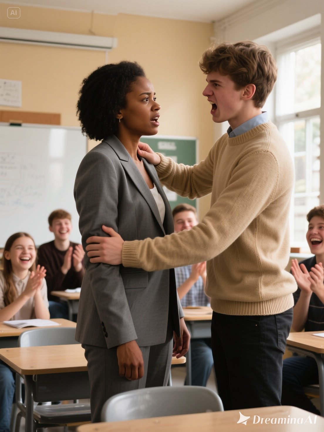 That morning, three notorious troublemakers—Ryan, Jake, and Mike—decided to test her. Ryan, the ringleader, smirked as he whispered to his friends.