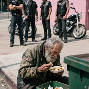 Restaurant staff often chased off kids like her, shouting and threatening, sometimes even pushing them away. Emily crouched beside one of the bins, pulling her old hood low over her face to stay unnoticed. She began digging through the trash.