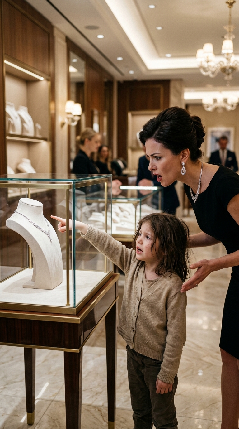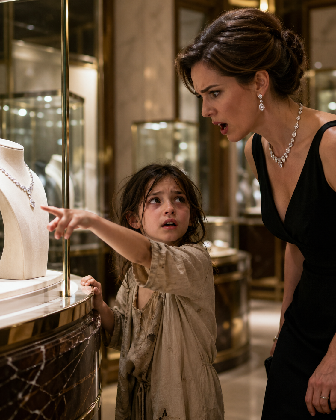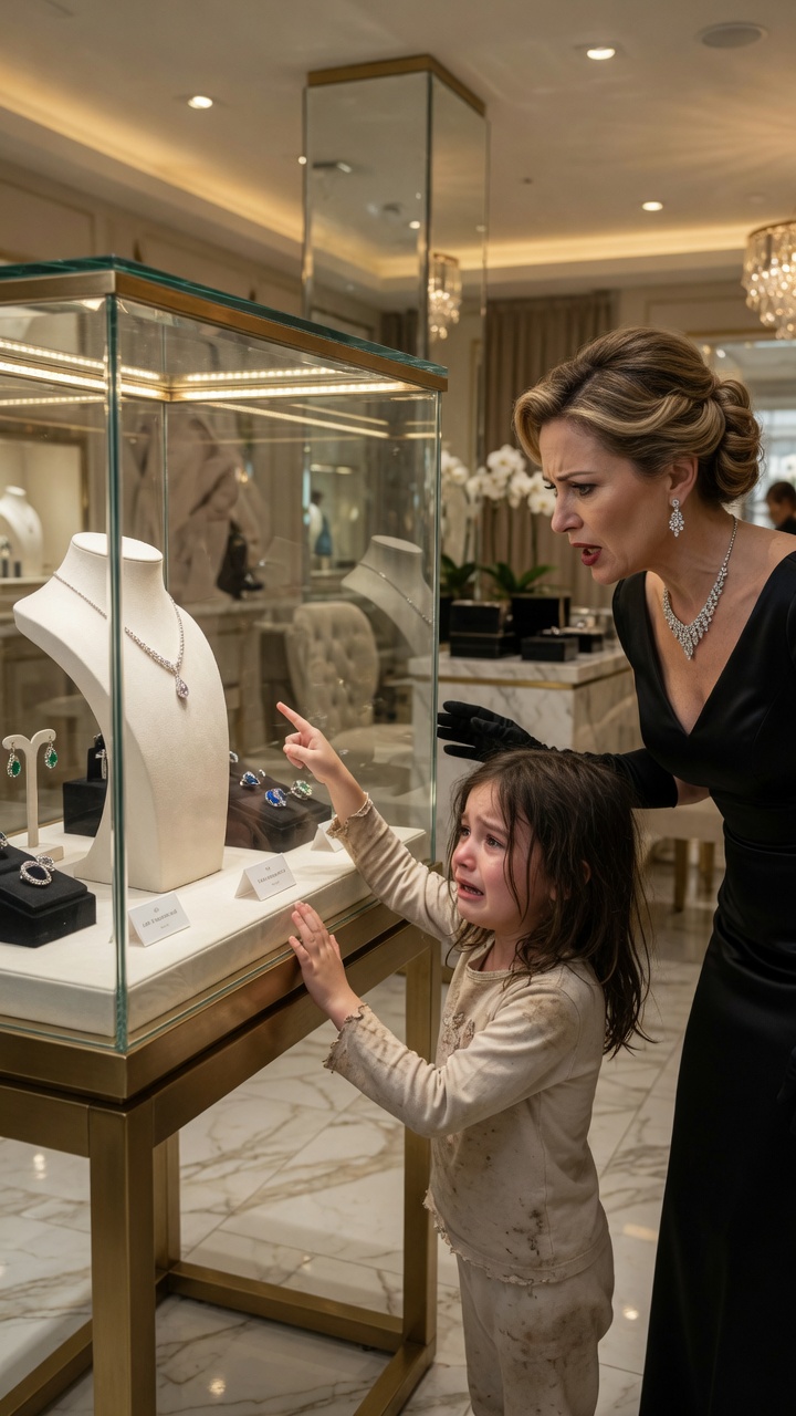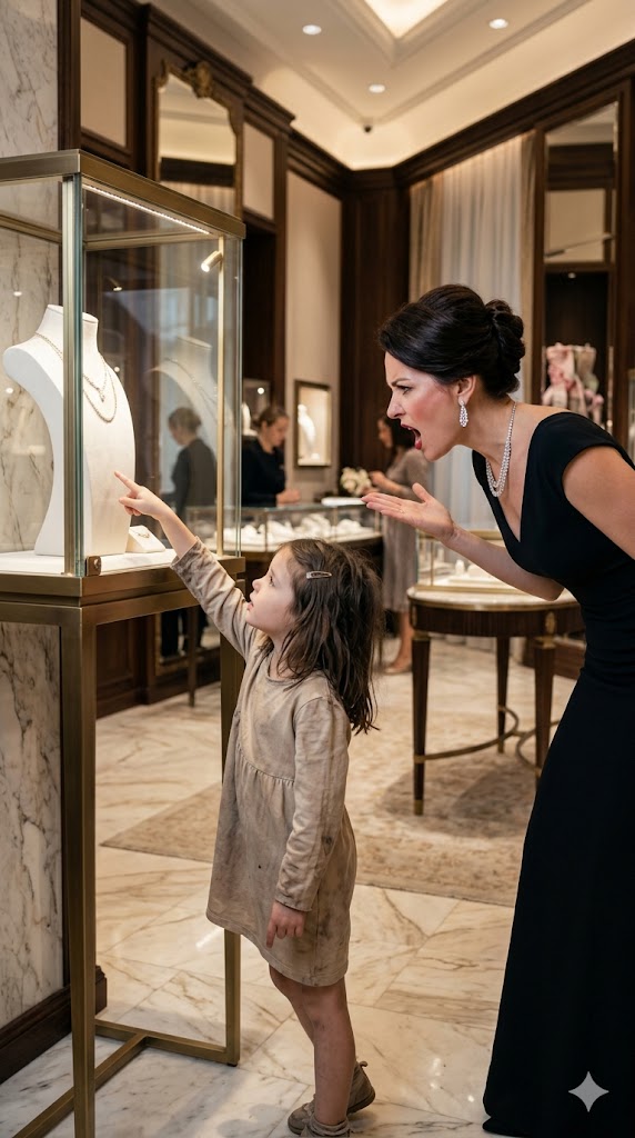 A woman near the front display paused mid-sentence, her bracelet still resting on her wrist as she stared. Another customer subtly stepped aside, putting distance between herself and the girl without making it obvious.