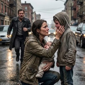 At last, her legs gave out. Maya collapsed onto the pavement, breath shallow, vision fading. Eli tugged at her arm, crying. Grace’s sharp sobs pierced the air. People glanced, some slowed—but most walked on. To them, she was invisible.