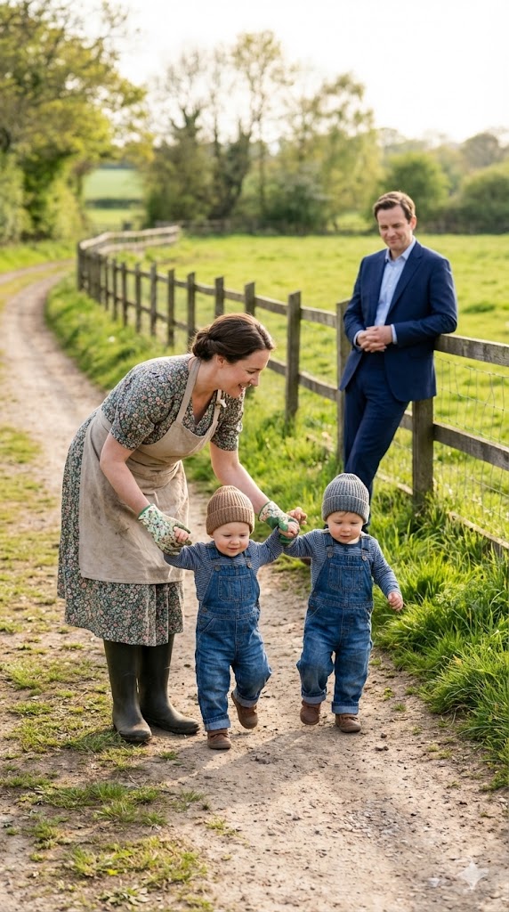 Her posture shifted—subtle, instinctive—placing her body between the twins and the man approaching.
