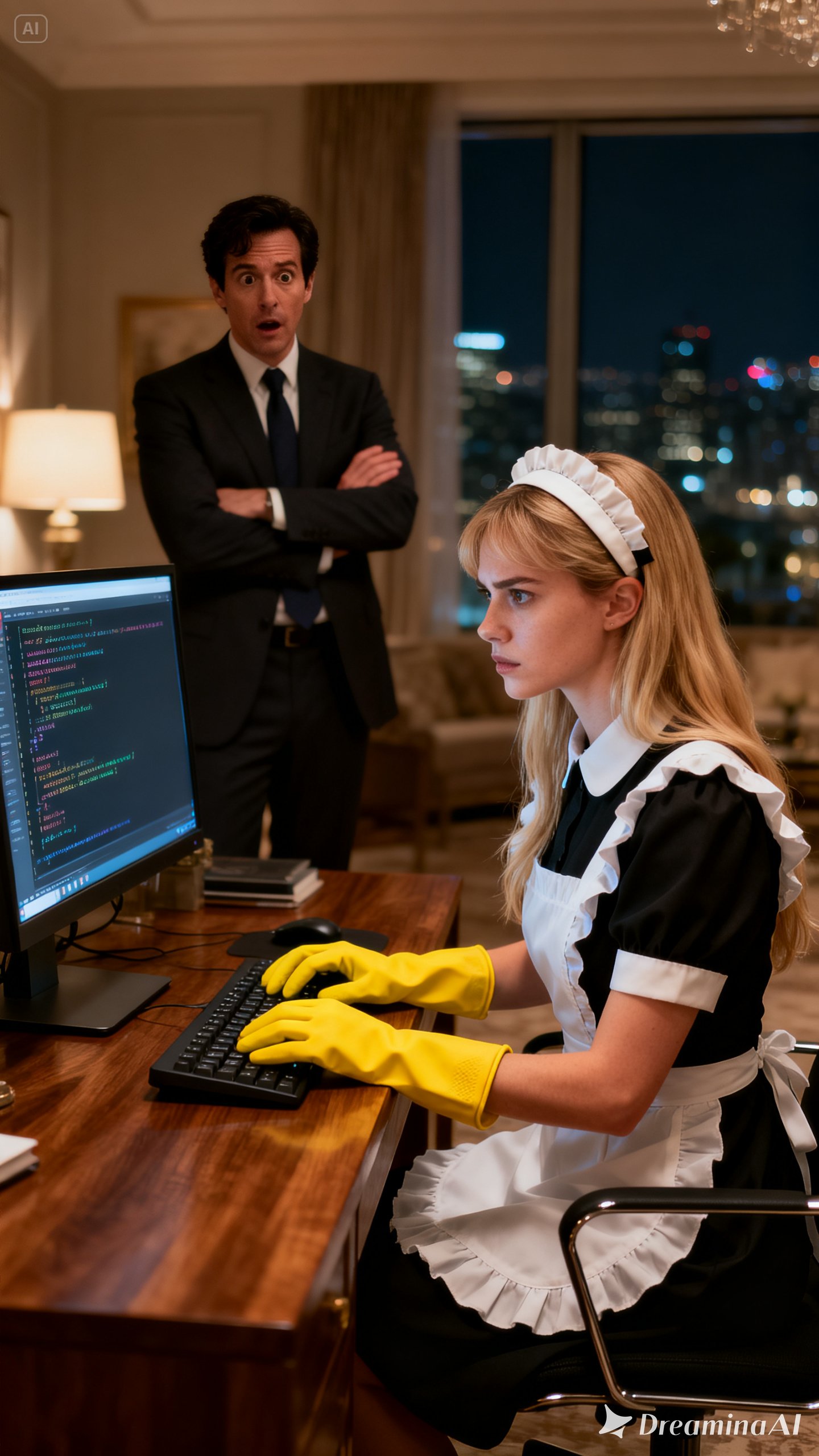 Alarmed, he followed the sound to his office and burst inside, expecting disaster. Instead, he found Lily, his quiet and unassuming housekeeper, seated at his computer, rapidly moving through lines of code.