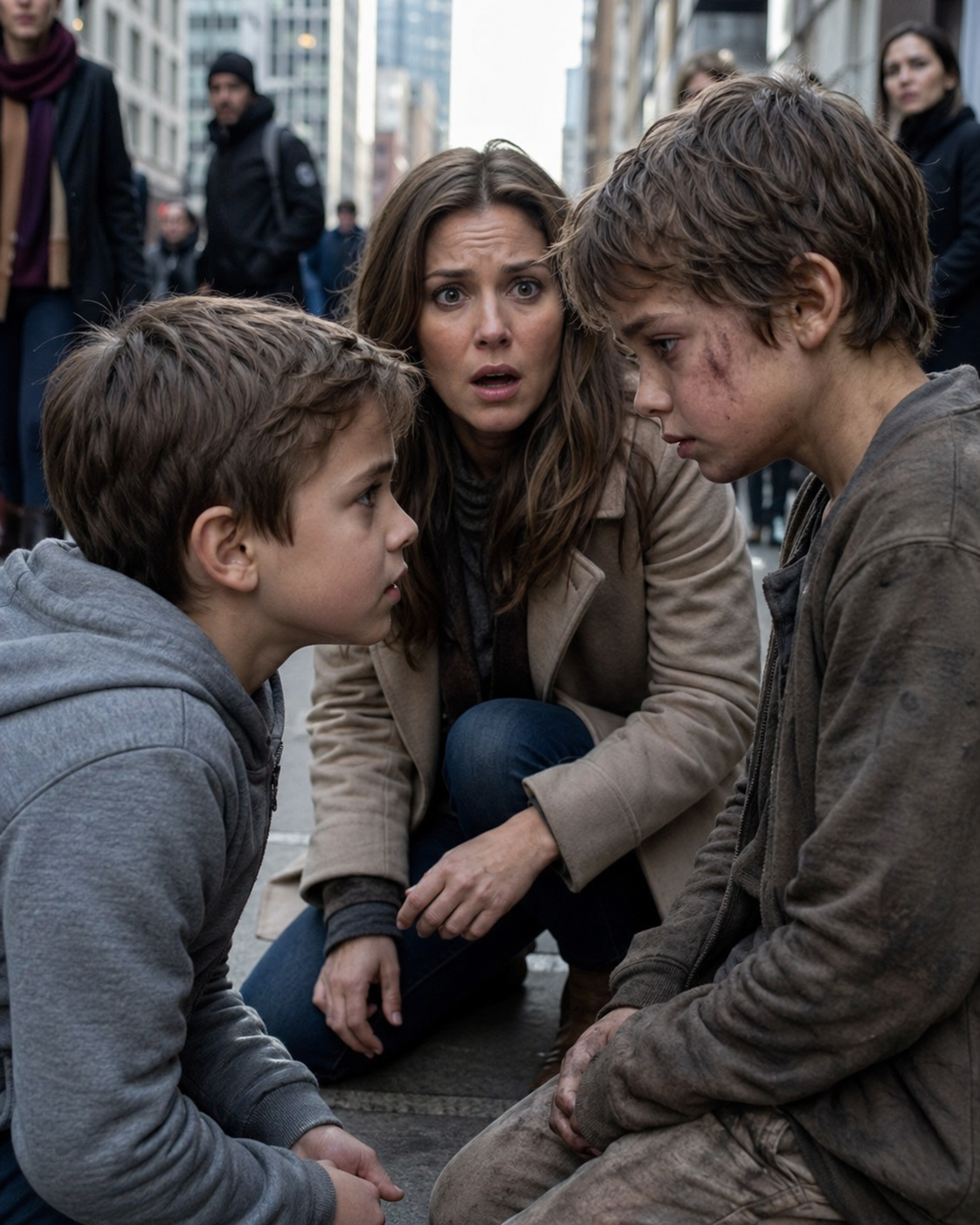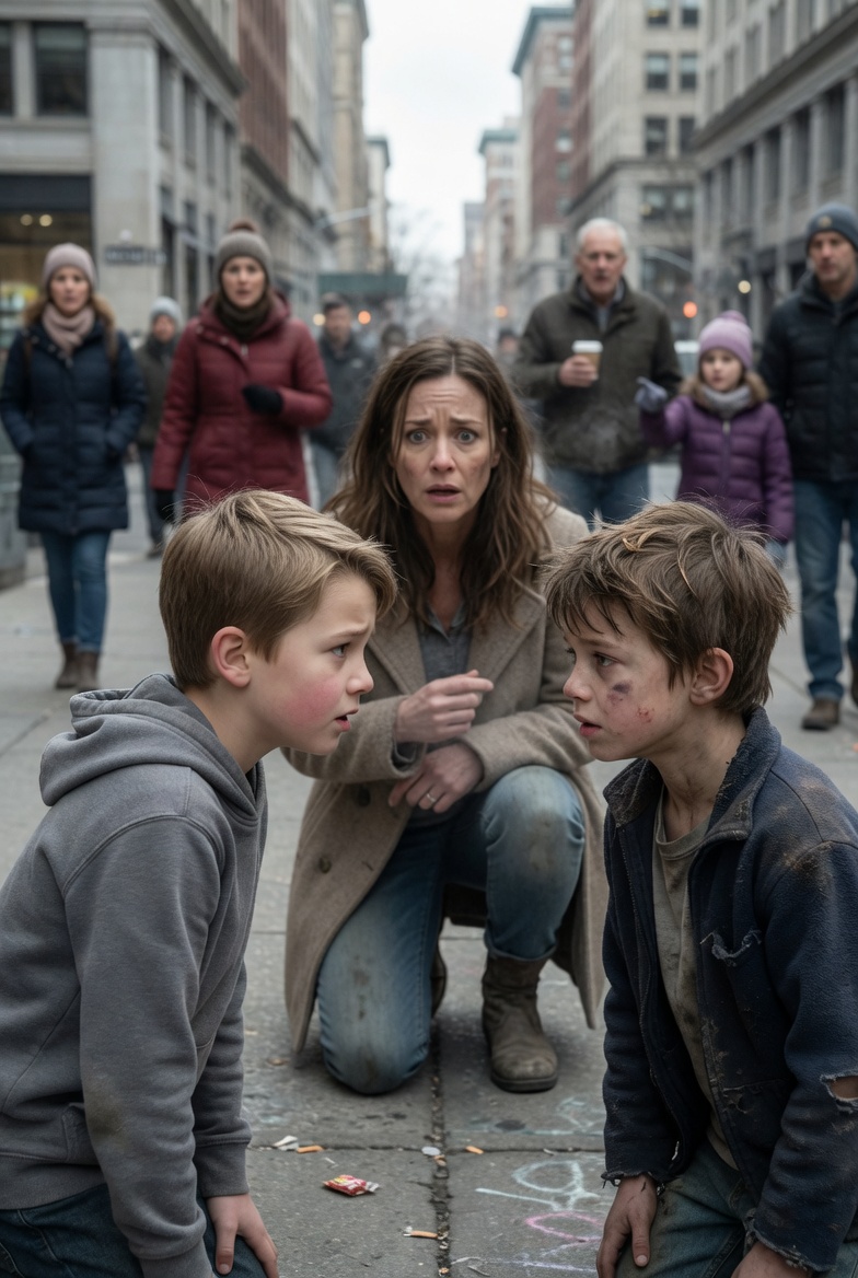 The mother’s hands trembled as she reached toward the boy on the ground, then stopped mid-air as if afraid the truth itself might break if she touched it.