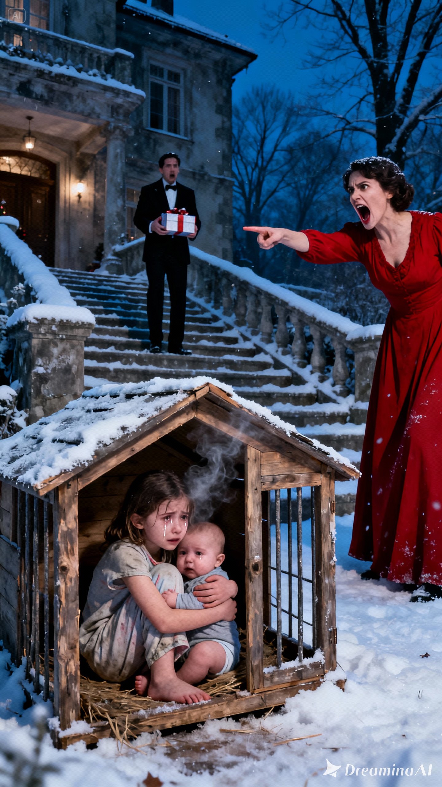 The back door flung open. Miranda shoved them toward the doghouse, tossed them inside, slammed the door shut, and locked it. In the dark, Harper clutched Mason tightly as their cries echoed around them. Miranda’s mocking voice rang through the door: “Filthy and useless. One word to your father, and you’ll regret it.”