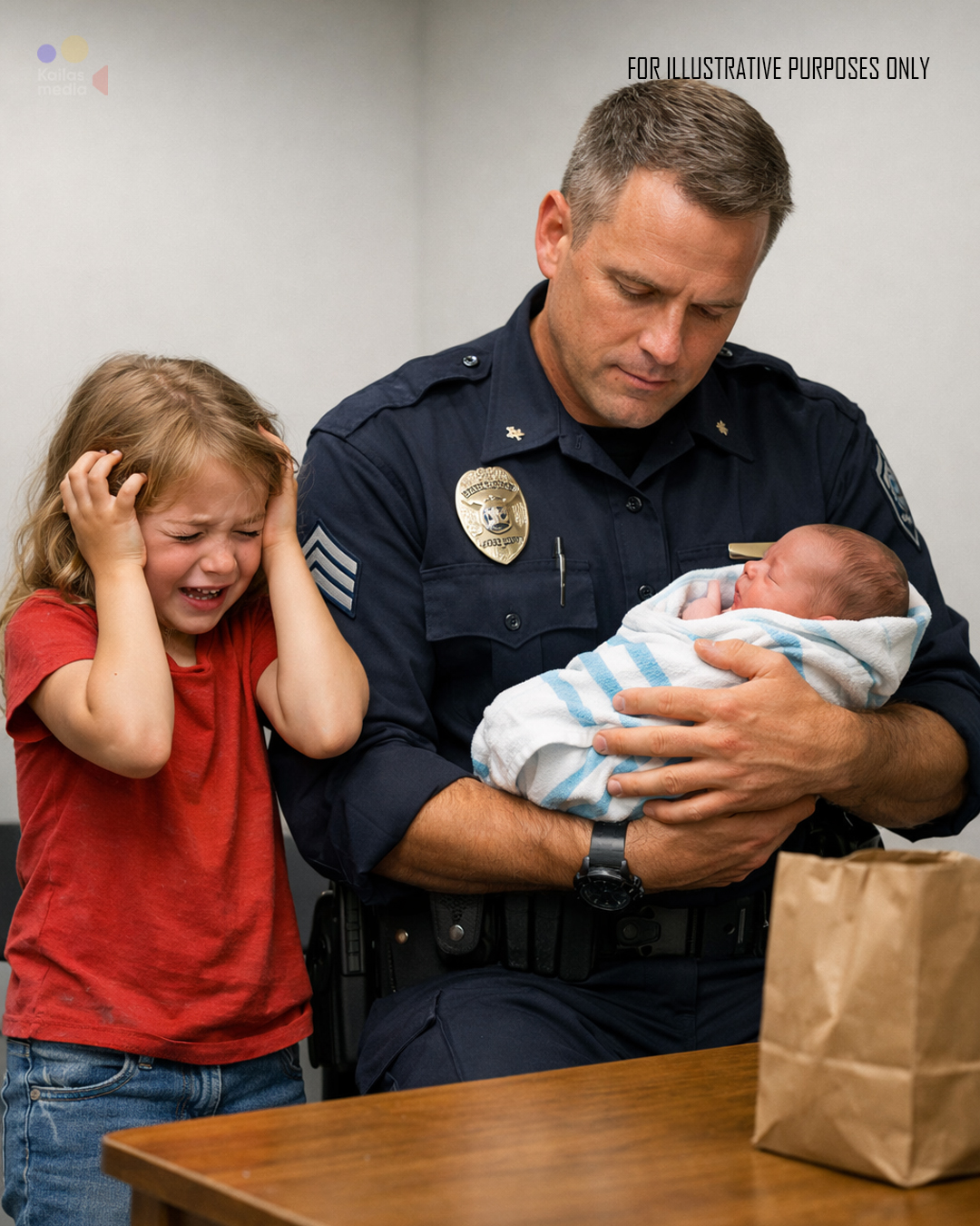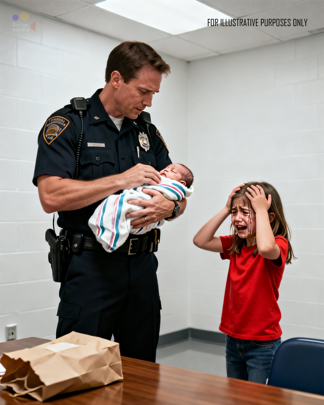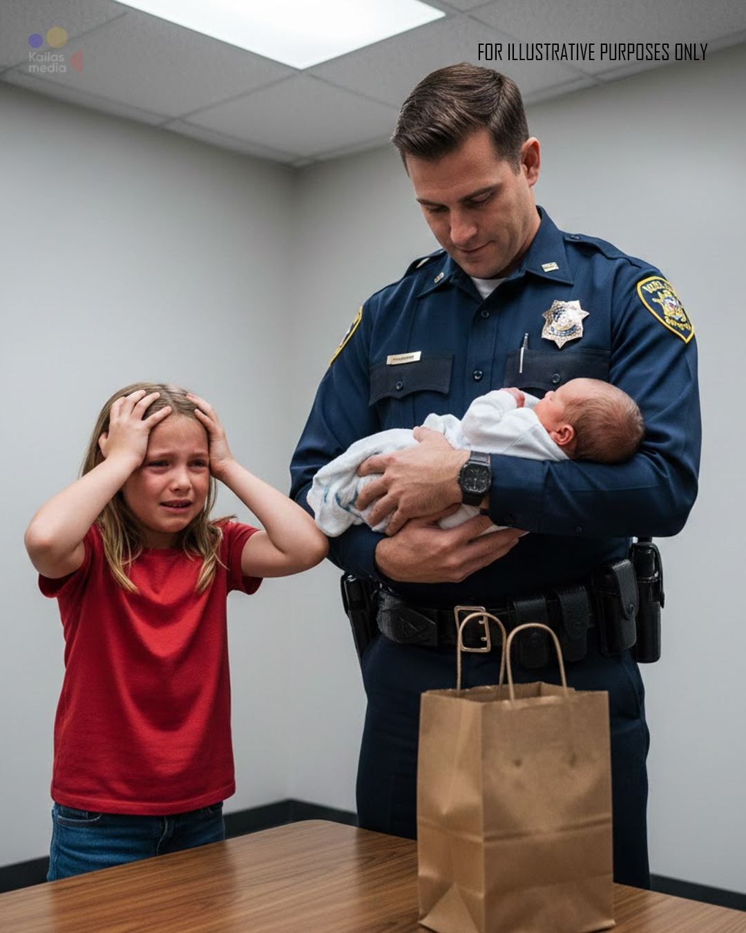 But it was her face that made him stop—her cheeks streaked with tears cutting clean paths through the grime, her eyes far too wide for her age, and her arms wrapped tightly around a brown paper bag pressed to her chest, as if she believed holding it firmly enough could keep something from slipping away.