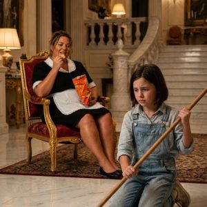 Harper Lane pressed her small face against the cold glass, watching droplets race each other down the pane. At nine years old she had learned that big houses held big secrets, and this house felt heavier with them than most. The Victorian structure loomed around her like a sleeping giant, its corridors stretching endlessly in directions she hadn’t yet explored, its rooms filled with furniture covered in white sheets that looked like ghosts in the dim morning light.