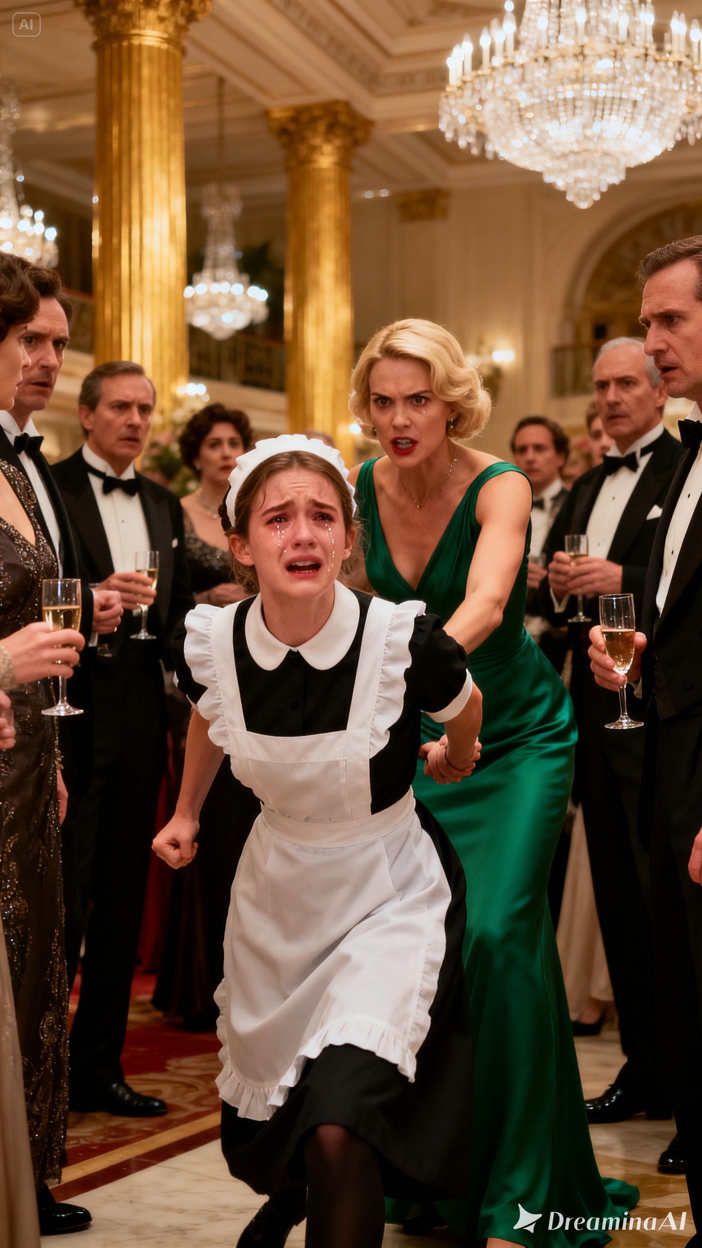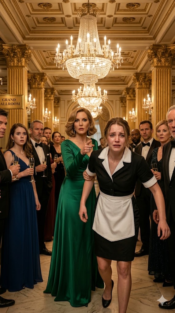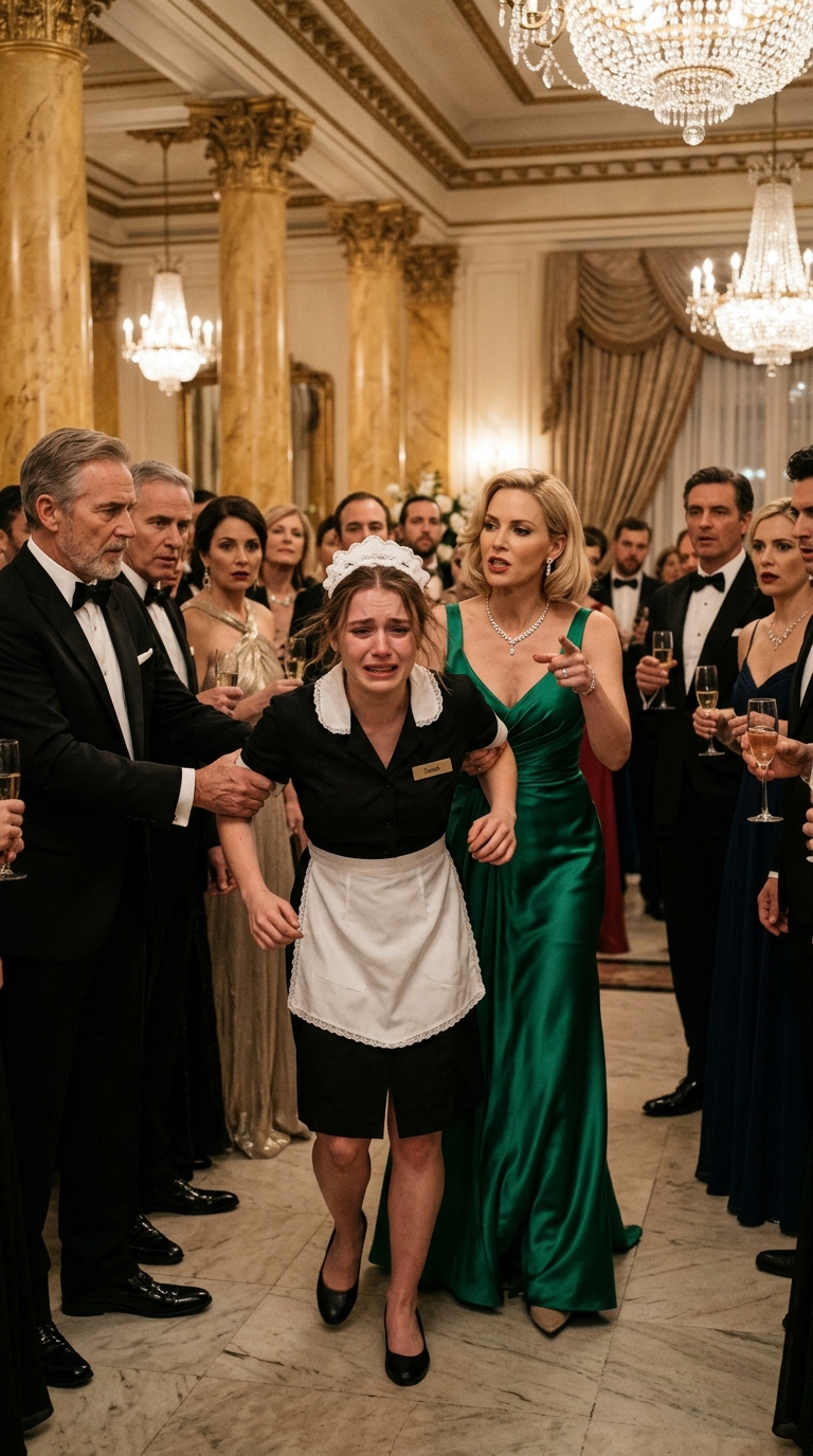 The maid searched the crowd desperately, hoping for even a single sympathetic glance. But in a room full of tuxedos, couture gowns, and sparkling jewelry, humiliation was stronger than compassion.