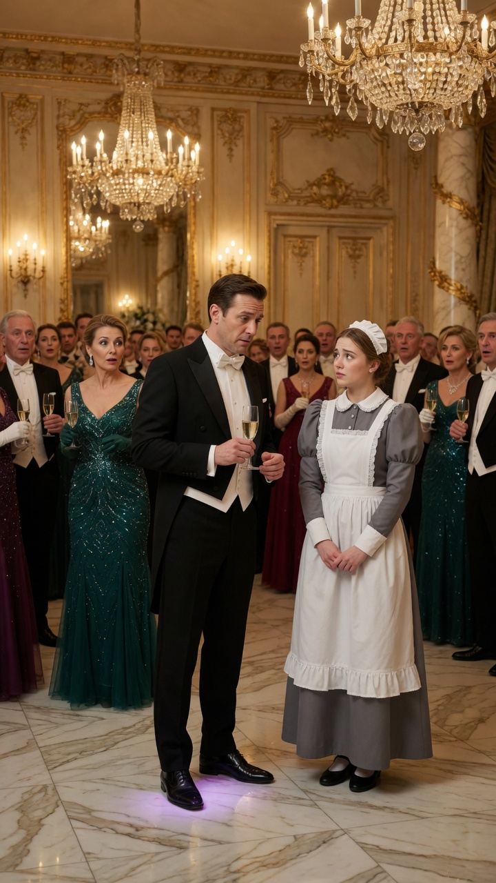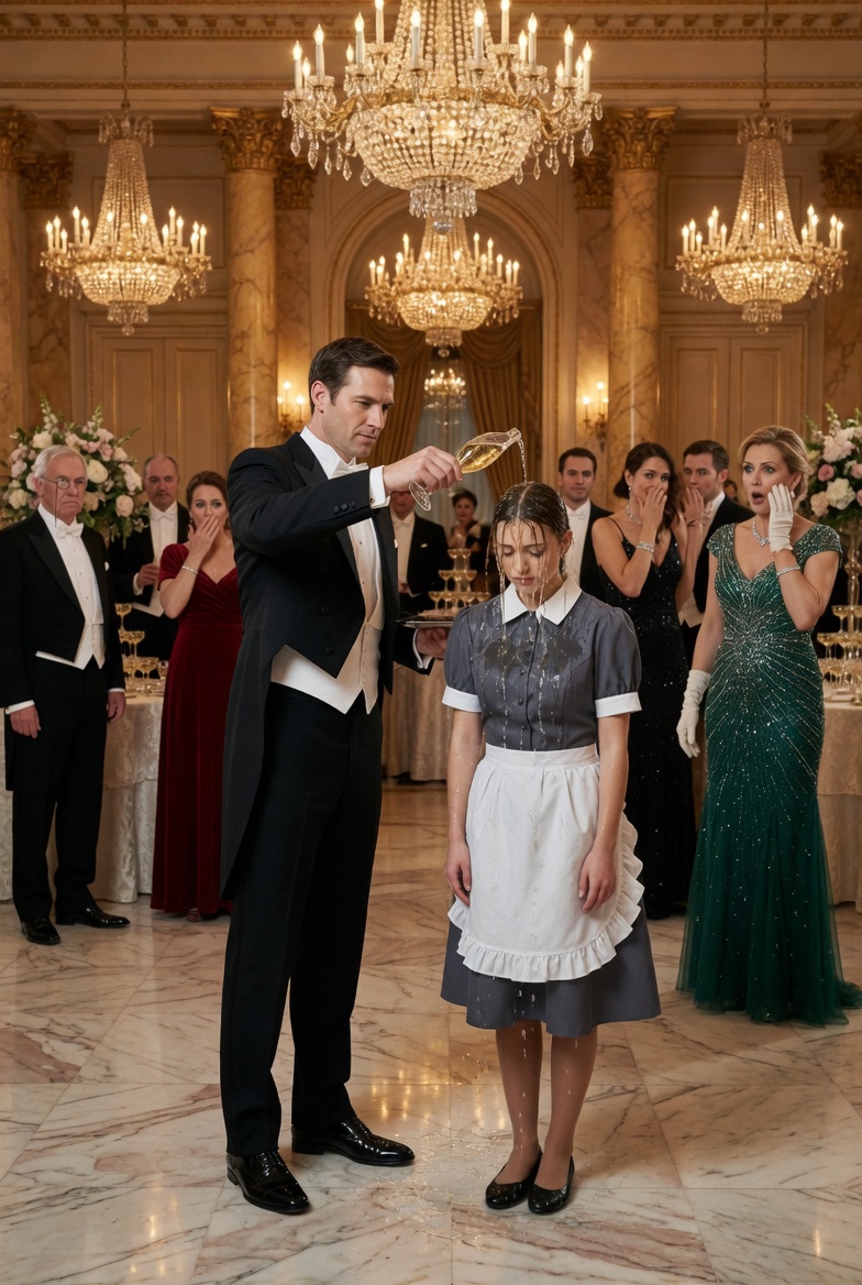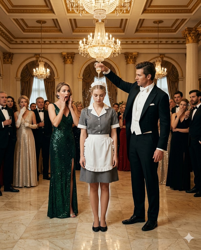 “You threw wine at me because I dared to exist in your space,” she said, her voice still quiet, yet every syllable reached the farthest corner of the ballroom without effort. “You called me worthless. You said maids should know their place. Now look at you.”