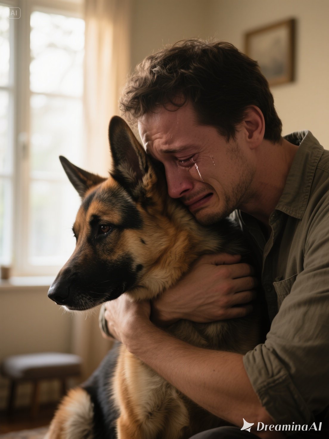 As though understanding every word, Shadow slowly lifted his paw and placed it gently on Michael’s shoulder.
