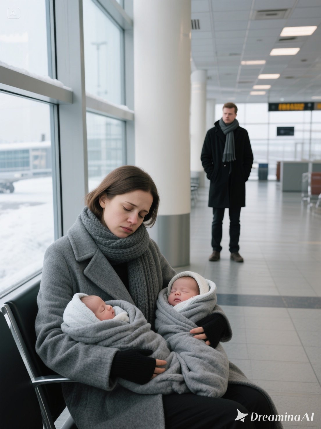 On the cold floor lay a young woman, cradling two babies tightly against her chest. Her worn bag served as a pillow, and a thin blanket barely shielded the infants from the sharp chill of the air conditioning.
