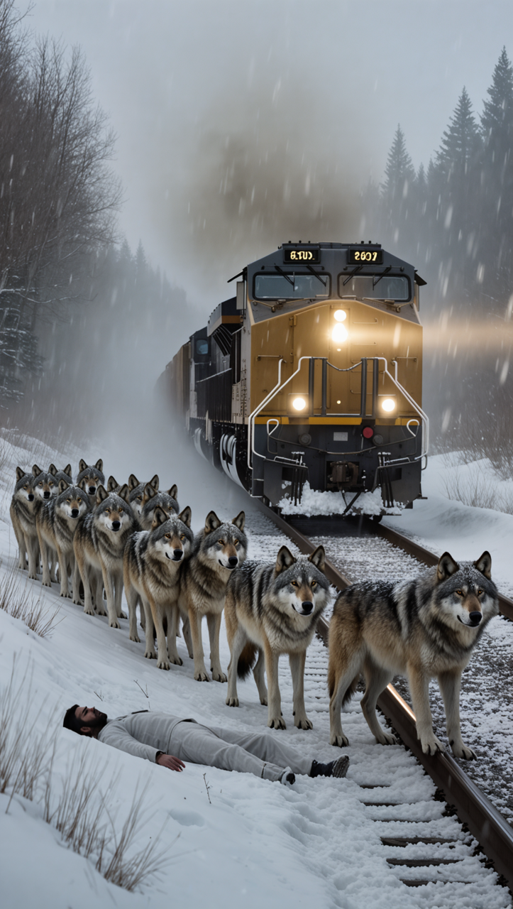 Shaken, the driver slammed the brakes. Metal screamed against ice, sparks flying, the train sliding dangerously close. But even then, the wolves refused to move. They braced themselves, as if determined to stop the steel beast.
