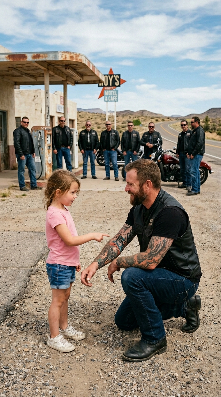 A Quiet Little Girl Walked Into a Diner and Pointed at a Biker’s Tattoo, Whispering “My Dad Had This Too…” — Until the Name She Spoke Made Every Man at the Table Realize the One They Lost Had Just Sent Her Back to Them