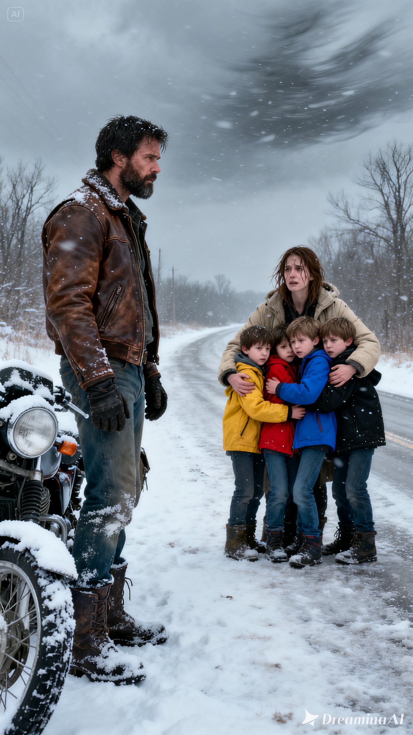 The sky had already darkened. What had begun as a dull winter afternoon had turned heavy and strange, the kind of sky that made experienced locals glance up twice. The wind picked up fast, pushing snow across the road in long silver sheets. By the time he kicked his motorcycle to life, the weather had gone from unpleasant to dangerous.