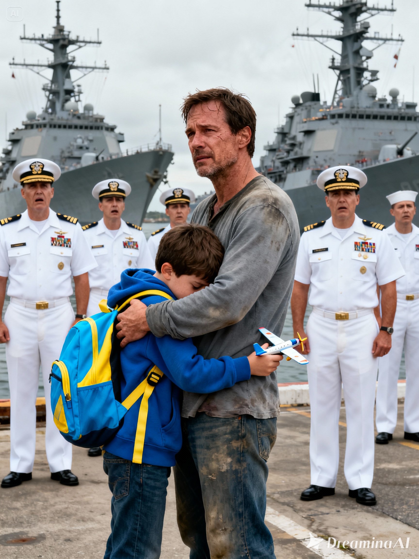 It was a cold morning at the naval base in San Diego, the kind where the air smelled of salt, metal, and old memories. Fog hung over the water, and the ships rested quietly like giants at rest. The sound of boots on the pavement punctuated the silence as sailors moved to their posts. Among the bustle of disciplined chaos, one man stood out—not because of his uniform, but because of the weight he carried in his gaze. His name was Daniel Brooks. He wasn’t there as a soldier that day, but as a single father, just trying to pick up his young son from daycare on base.