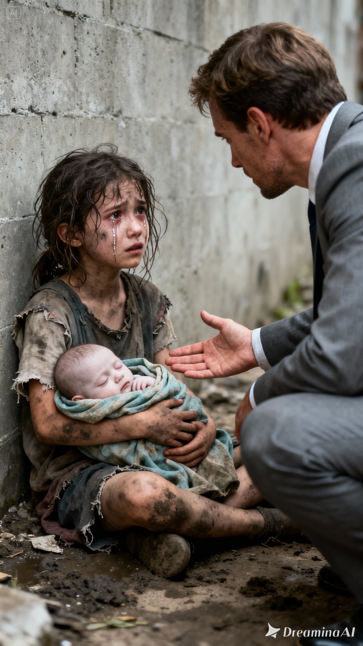 Roberto felt his chest tighten, followed by a familiar echo: Clara in the hospital, machines, the helplessness, the words “there’s nothing else we can do.” He swallowed and searched for an adult—anyone. No one. Only the alley and the girl’s broken crying.
