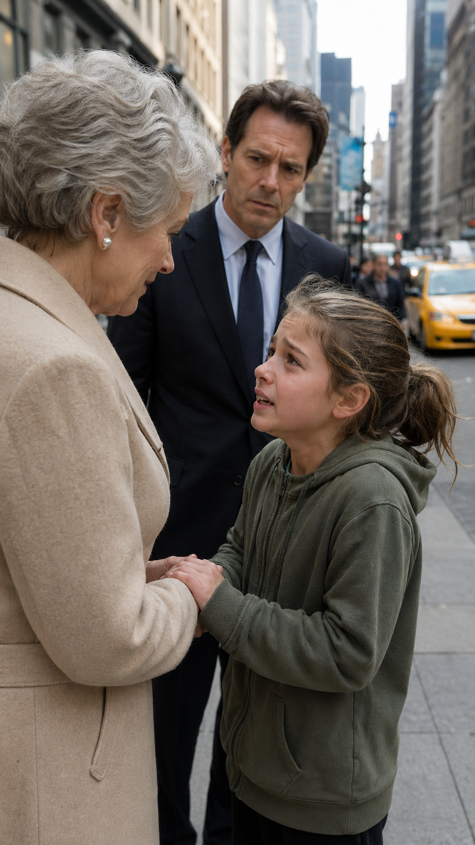 Evelyn had her people—discreet, expensive investigators—track down Claire’s location: a charity hospice in Queens. By midnight, Evelyn’s private car pulled up outside the faded building. Lily sat beside her, small hand clutching the sapphire ring Evelyn had removed and given her in the restaurant.