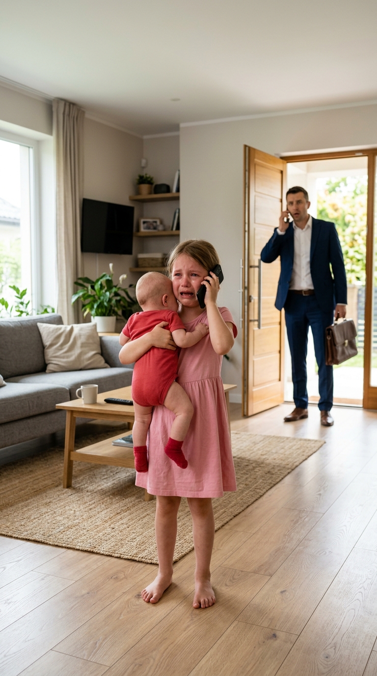 A wealthy father trusted his second wife and believed his children were safe while he was away—until one stormy night, he came home and found his daughter clutching her baby brother in fear, whispering words that exposed a hidden truth.