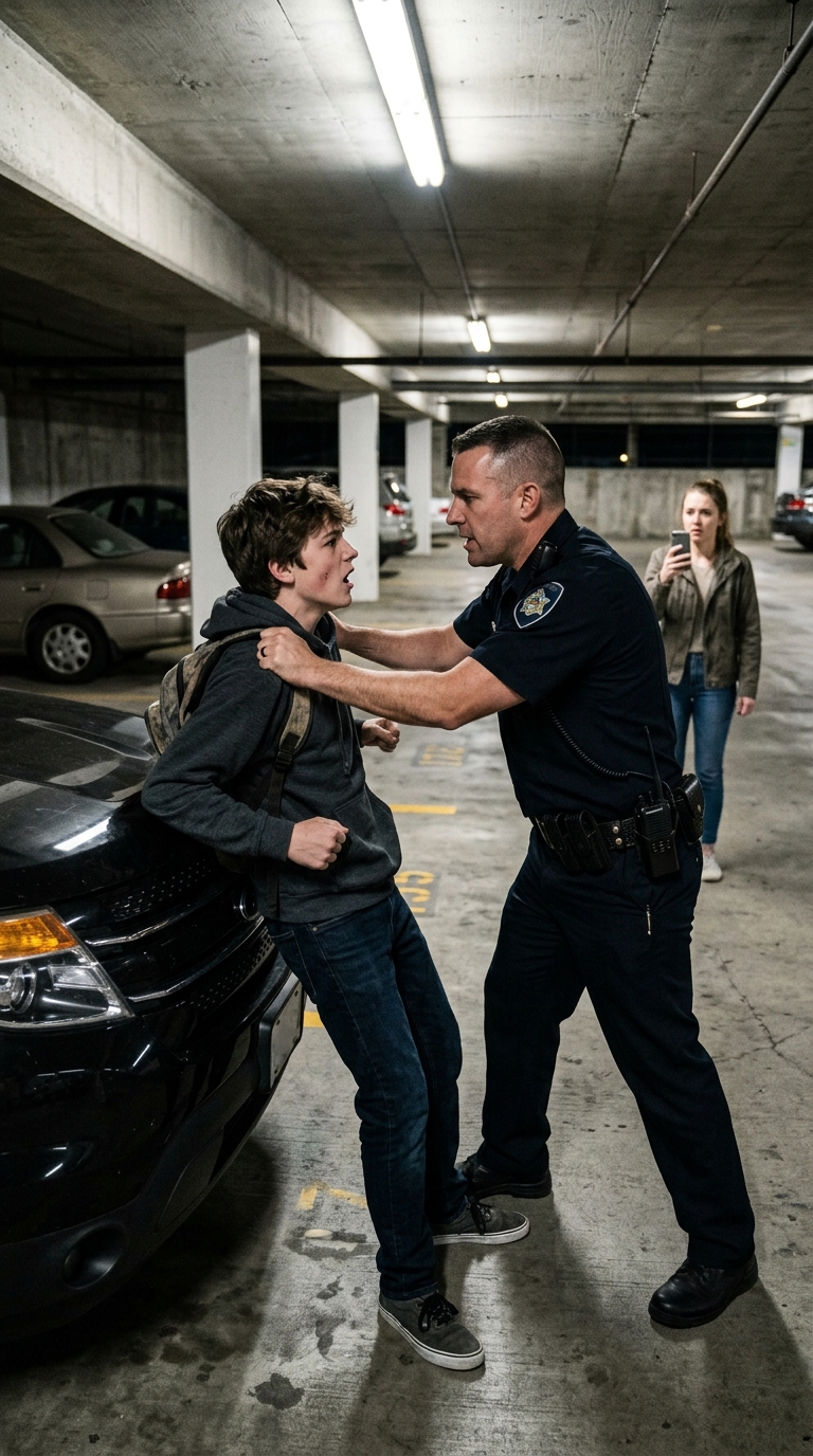 Officer Travis Cole tightened his grip, twisting the boy’s wrist even harder. Marcus cried out in pain. “That’s my dad’s car!”
