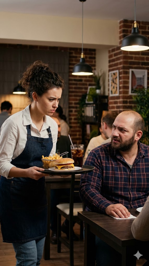 “Hey.” Marcus stepped up beside her at the service counter. “That guy’s been there twenty minutes. No food, hasn’t touched his drink. Want me to check?”