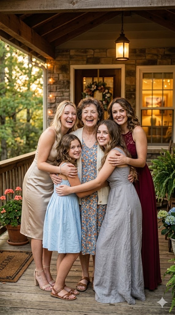 The young women turned toward her with bright smiles. Before Emily could even react, they were already running toward the porch. The old wooden steps creaked beneath their hurried footsteps, while Emily remained standing there, stunned and unable to believe what she was seeing.