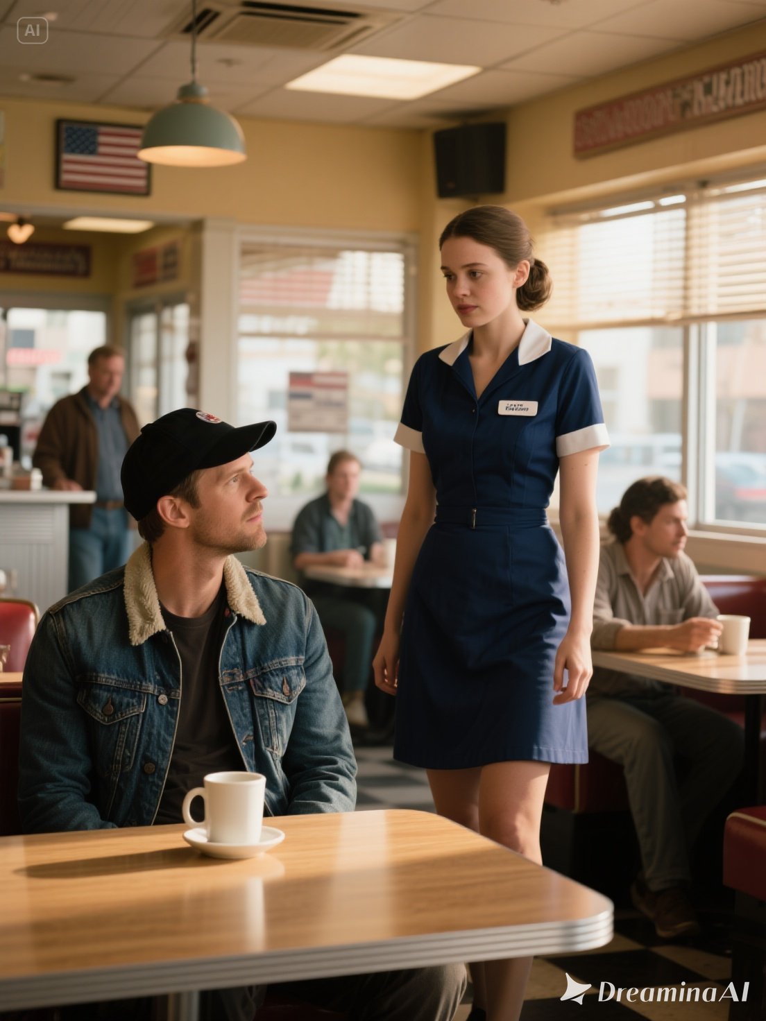 He came dressed to disappear: faded Levi’s worn in all the right places, old boots dulled by years, a sun-bleached John Deere cap pulled low, and a cracked leather jacket that had seen miles and memories. He moved like a man used to taking in a room without being seen—unhurried, unthreatening, careful. His tone stayed level, his gestures small. It wasn’t fear—it was instinct. The instinct of someone who’d learned to read people long before they opened their mouths.