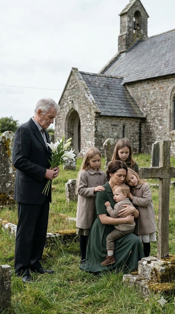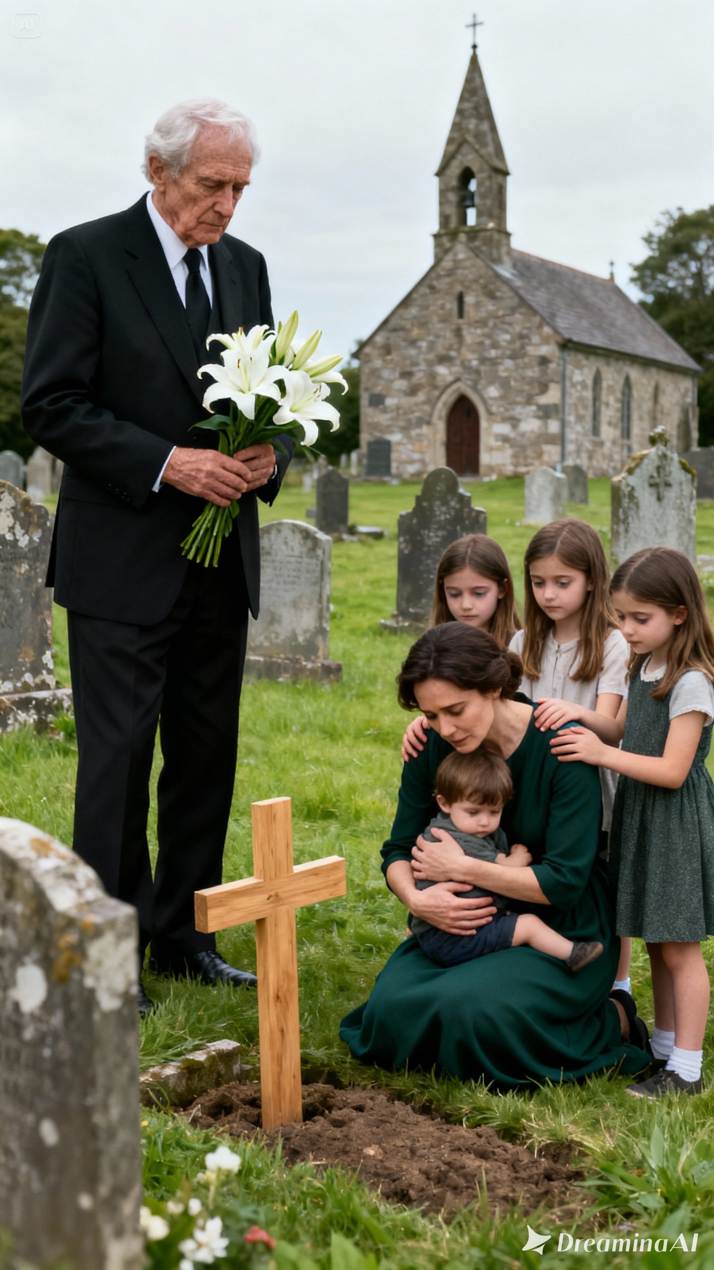 Six figures walked among the headstones. Four children laid flowers. Evelyn stood nearby. Richard stepped up to Julian’s grave and spoke quietly.