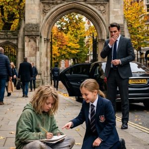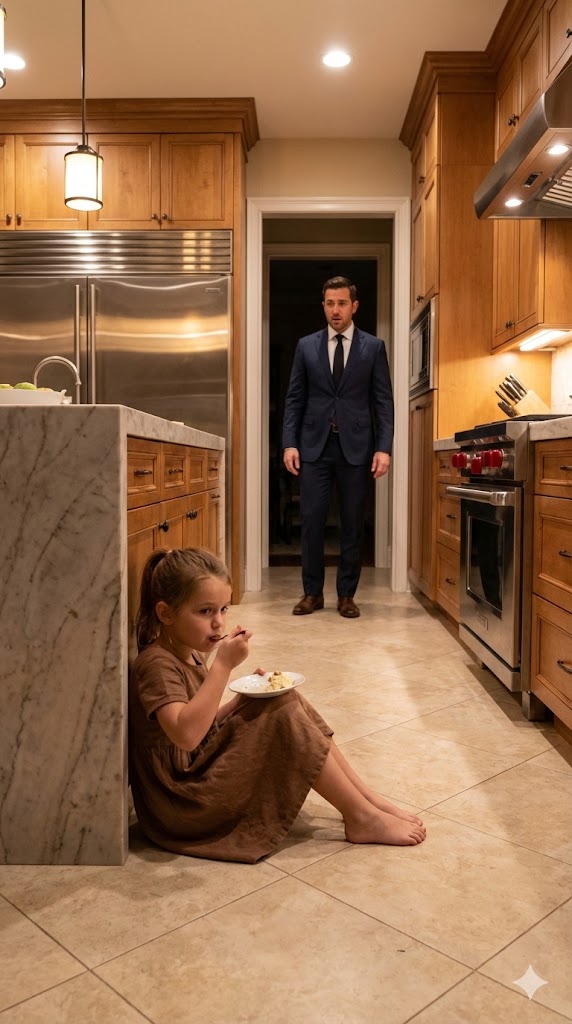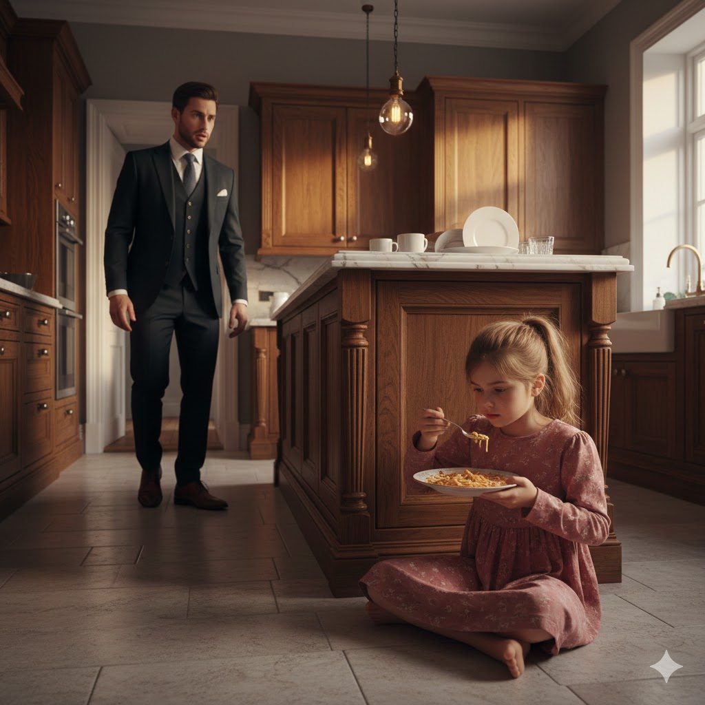 She couldn’t have been more than eight years old. Thin arms wrapped tightly around herself. Shoes worn through at the soles. In her hands was a half-eaten piece of bread and a small plastic container with cold pasta—food clearly thrown away earlier that day.
